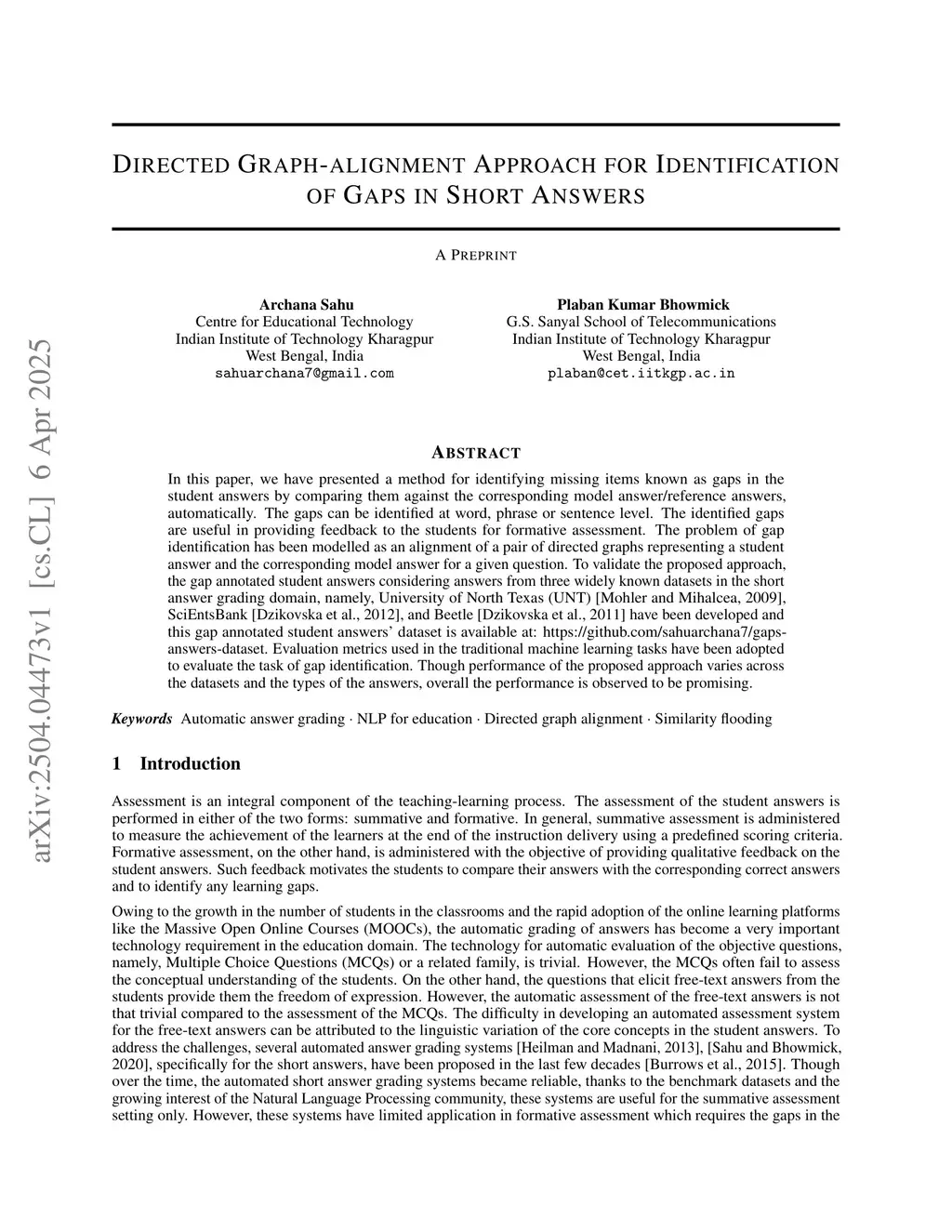 Directed Graph-alignment Approach for Identification of Gaps in Short Answers