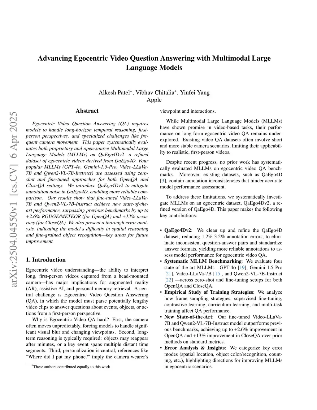 Advancing Egocentric Video Question Answering with Multimodal Large Language Models