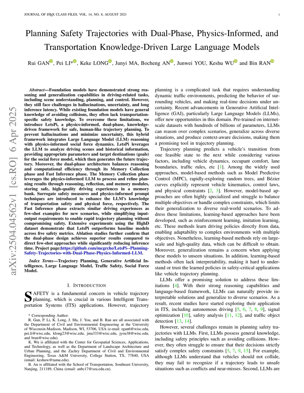 Planning Safety Trajectories with Dual-Phase, Physics-Informed, and Transportation Knowledge-Driven Large Language Models
