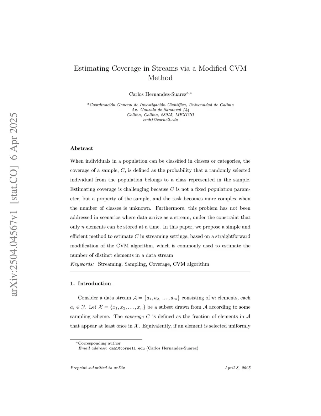 Estimating Coverage in Streams via a Modified CVM Method