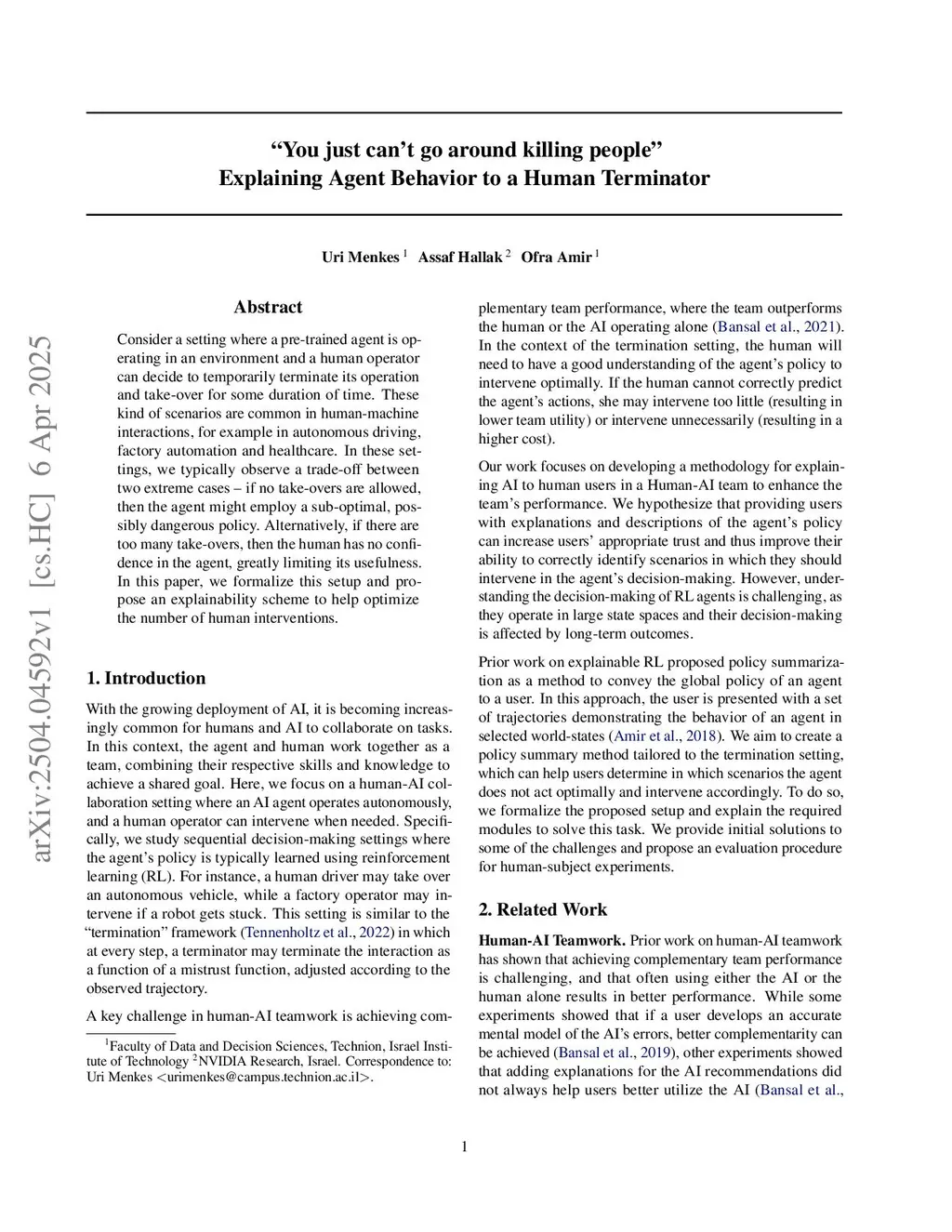 "Trust me on this" Explaining Agent Behavior to a Human Terminator