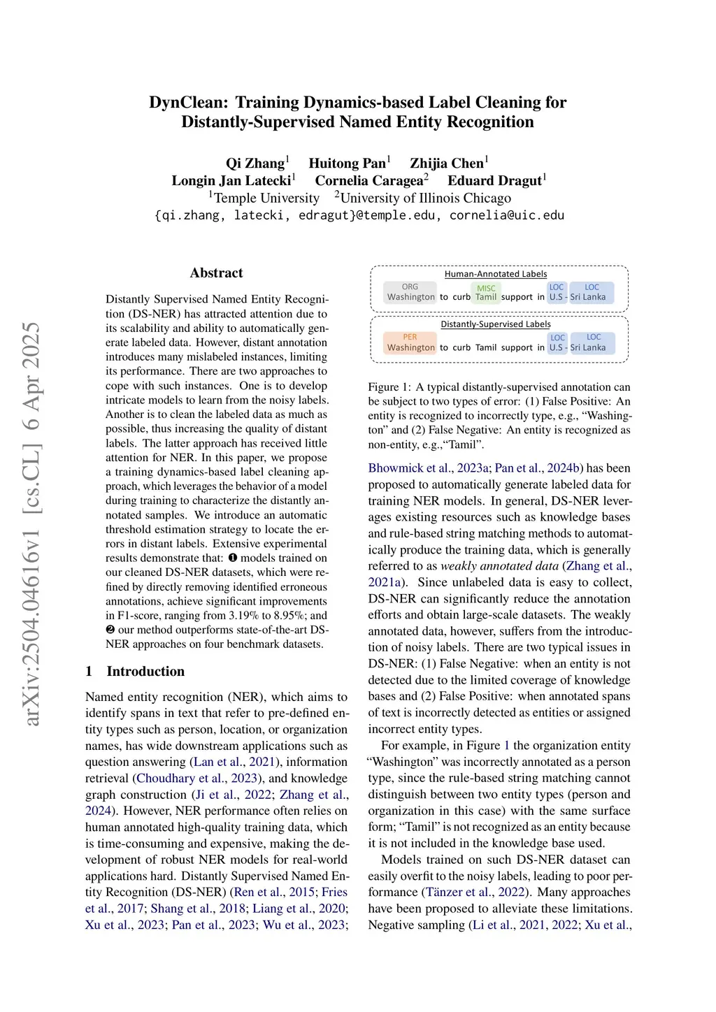 Distantly Supervised Named Entity Recognition (DS-NER) has attracted attention due to its scalability and ability to automatically generate labeled data. However, distant annotation introduces many mislabeled instances, limiting its performance. Most of the existing work attempt to solve this problem by developing intricate models to learn from the noisy labels. An alternative approach is to attempt to clean the labeled data, thus increasing the quality of distant labels. This approach has received little attention for NER. In this paper, we propose a training dynamics-based label cleaning approach, which leverages the behavior of a model as training progresses to characterize the distantly annotated samples. We also introduce an automatic threshold estimation strategy to locate the errors in distant labels. Extensive experimental results demonstrate that: (1) models trained on our cleaned DS-NER datasets, which were refined by directly removing identified erroneous annotations, achieve significant improvements in F1-score, ranging from 3.18% to 8.95%; and (2) our method outperforms numerous advanced DS-NER approaches across four datasets.