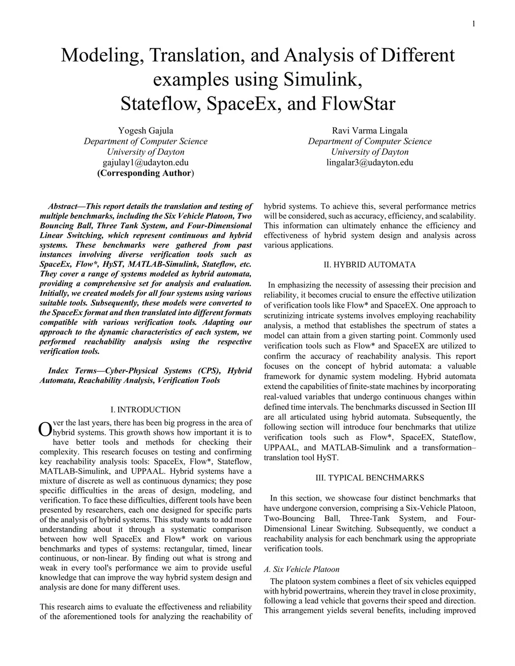 This report details the translation and testing of multiple benchmarks, including the Six Vehicle Platoon, Two Bouncing Ball, Three Tank System, and Four-Dimensional Linear Switching, which represent continuous and hybrid systems. These benchmarks were gathered from past instances involving diverse verification tools such as SpaceEx, Flow*, HyST, MATLAB-Simulink, Stateflow, etc. They cover a range of systems modeled as hybrid automata, providing a comprehensive set for analysis and evaluation. Initially, we created models for all four systems using various suitable tools. Subsequently, these models were converted to the SpaceEx format and then translated into different formats compatible with various verification tools. Adapting our approach to the dynamic characteristics of each system, we performed reachability analysis using the respective verification tools.