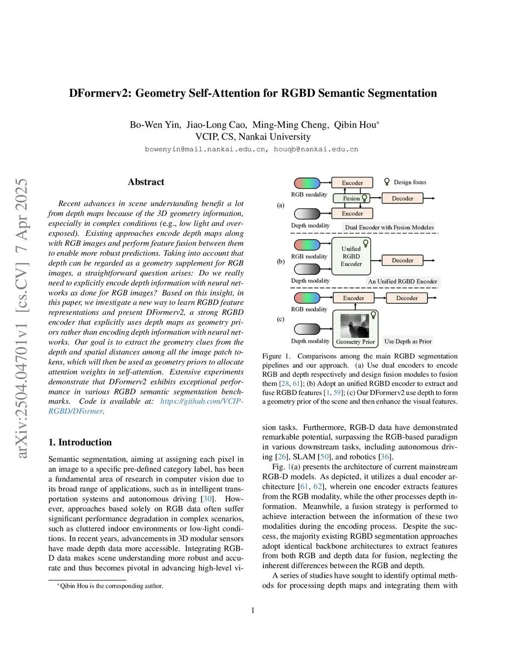 DFormerv2: Geometry Self-Attention for RGBD Semantic Segmentation
