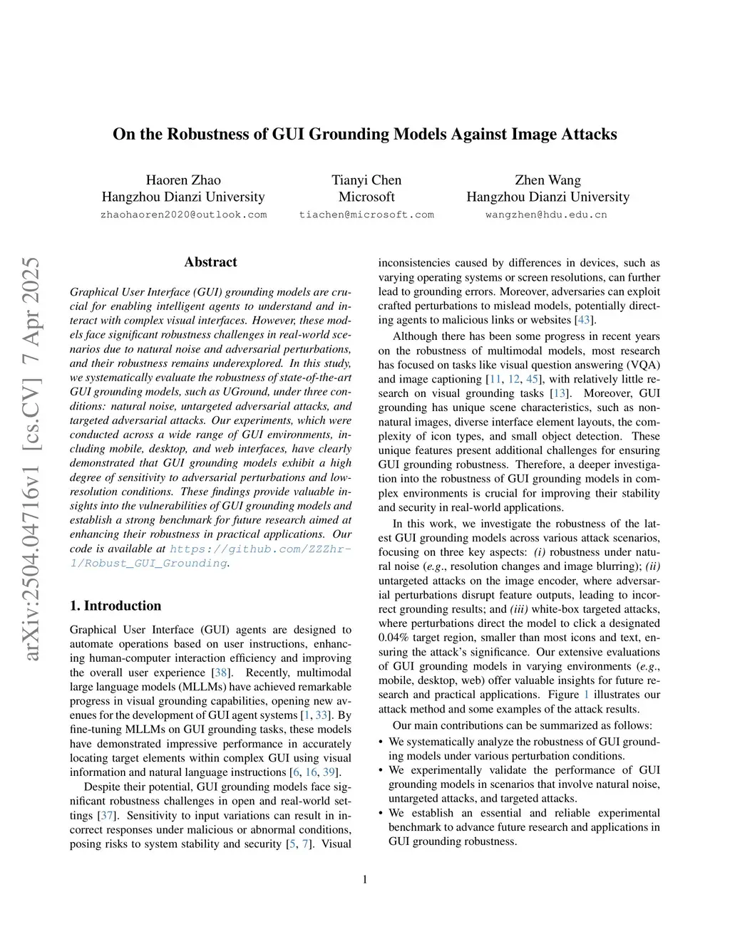 On the Robustness of GUI Grounding Models Against Image Attacks