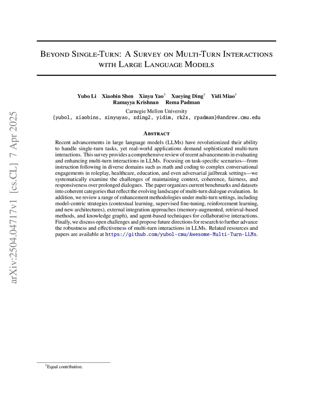 Beyond Single-Turn: A Survey on Multi-Turn Interactions with Large Language Models