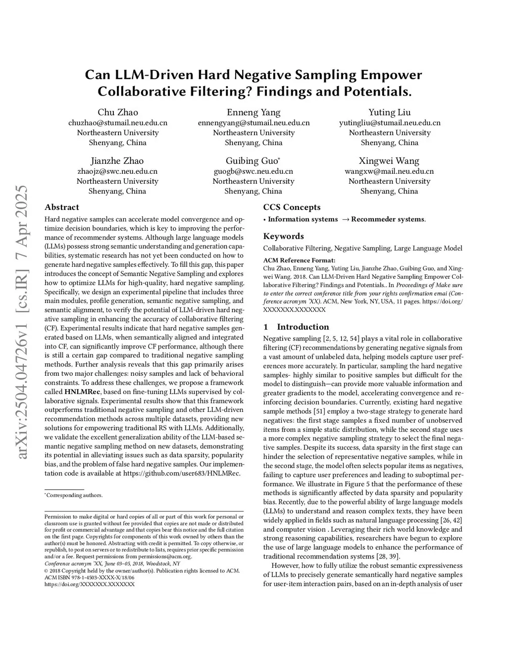 Hard negative sampling improves recommendation performance by accelerating convergence and sharpening the decision boundary. However, most existing methods rely on heuristic strategies, selecting negatives from a fixed candidate pool. Lacking semantic awareness, these methods often misclassify items that align with users' semantic interests as negatives, resulting in False Hard Negative Samples (FHNS). Such FHNS inject noisy supervision and hinder the model's optimal performance. To address this challenge, we propose HNLMRec, a generative semantic negative sampling framework. Leveraging the semantic reasoning capabilities of Large Language Models (LLMs), HNLMRec directly generates negative samples that are behaviorally distinct yet semantically relevant with respect to user preferences. Furthermore, we integrate collaborative filtering signals into the LLM via supervised fine-tuning, guiding the model to synthesize more reliable and informative hard negatives. Extensive experiments on multiple real-world datasets demonstrate that HNLMRec significantly outperforms traditional methods and LLM-enhanced baselines, while effectively mitigating popularity bias and data sparsity, thereby improving generalization.