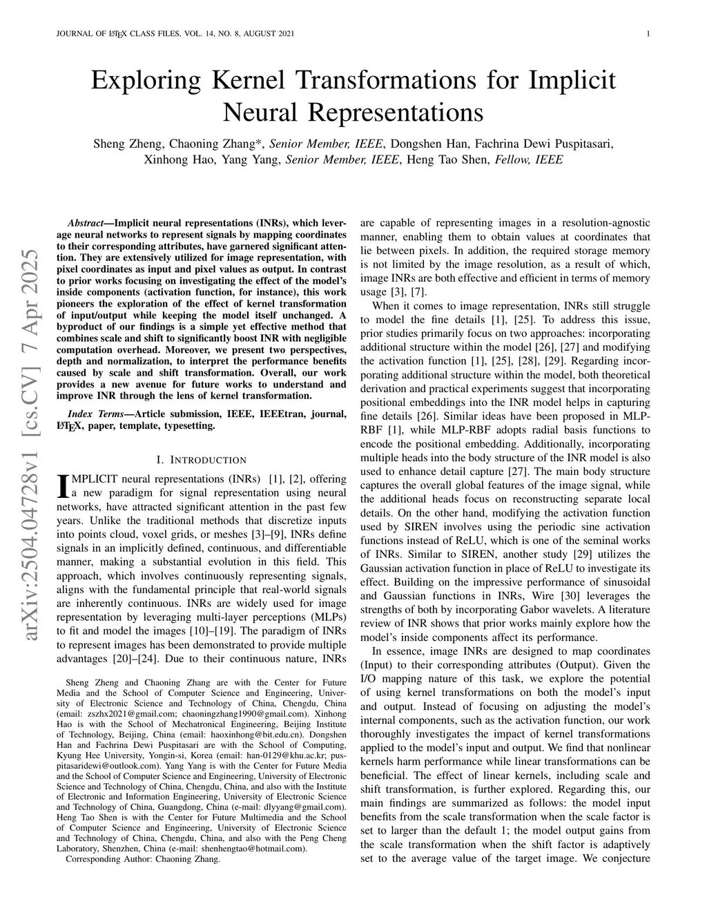 Implicit neural representations (INRs), which leverage neural networks to represent signals by mapping coordinates to their corresponding attributes, have garnered significant attention. They are extensively utilized for image representation, with pixel coordinates as input and pixel values as output. In contrast to prior works focusing on investigating the effect of the model's inside components (activation function, for instance), this work pioneers the exploration of the effect of kernel transformation of input/output while keeping the model itself unchanged. A byproduct of our findings is a simple yet effective method that combines scale and shift to significantly boost INR with negligible computation overhead. Moreover, we present two perspectives, depth and normalization, to interpret the performance benefits caused by scale and shift transformation. Overall, our work provides a new avenue for future works to understand and improve INR through the lens of kernel transformation.