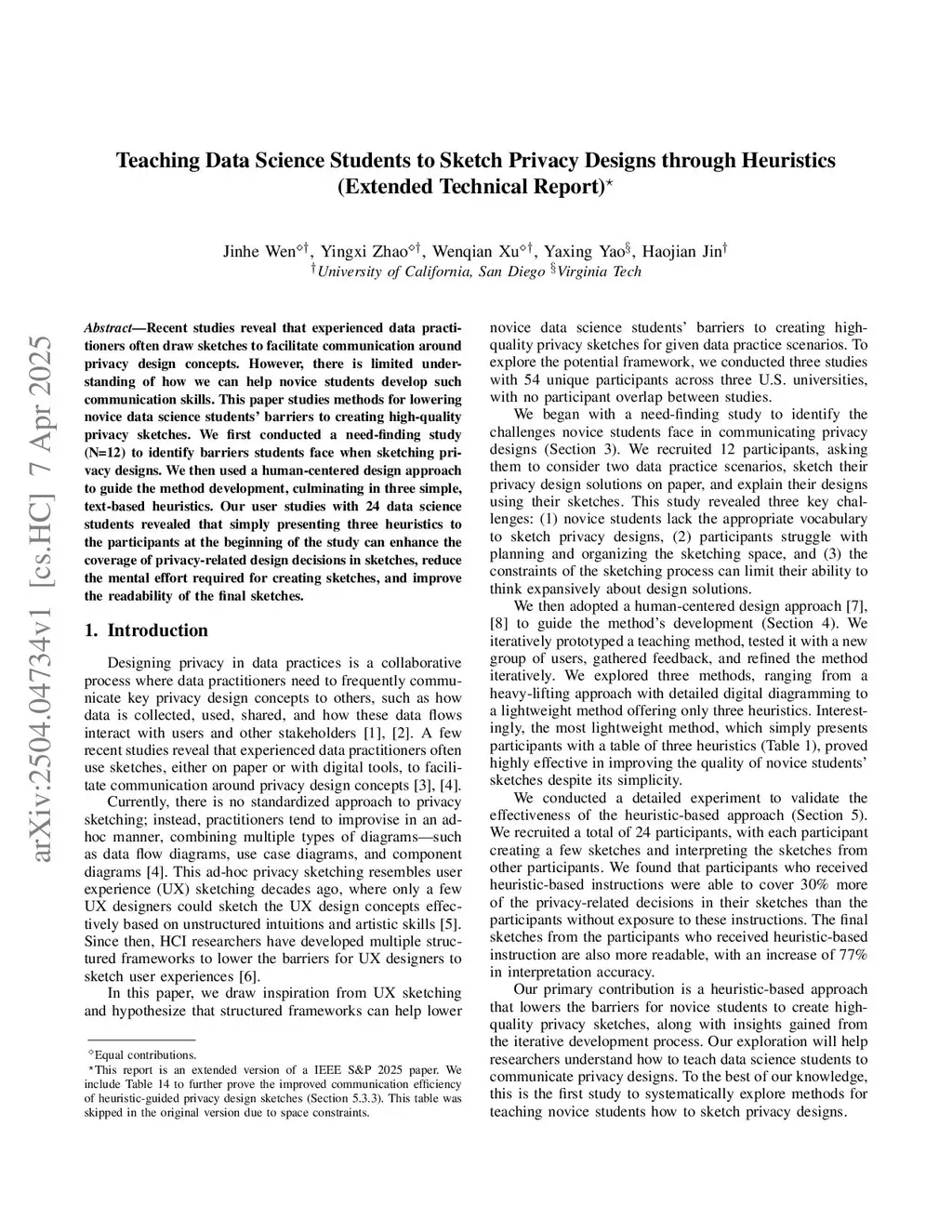 Teaching Data Science Students to Sketch Privacy Designs through Heuristics (Extended Technical Report)
