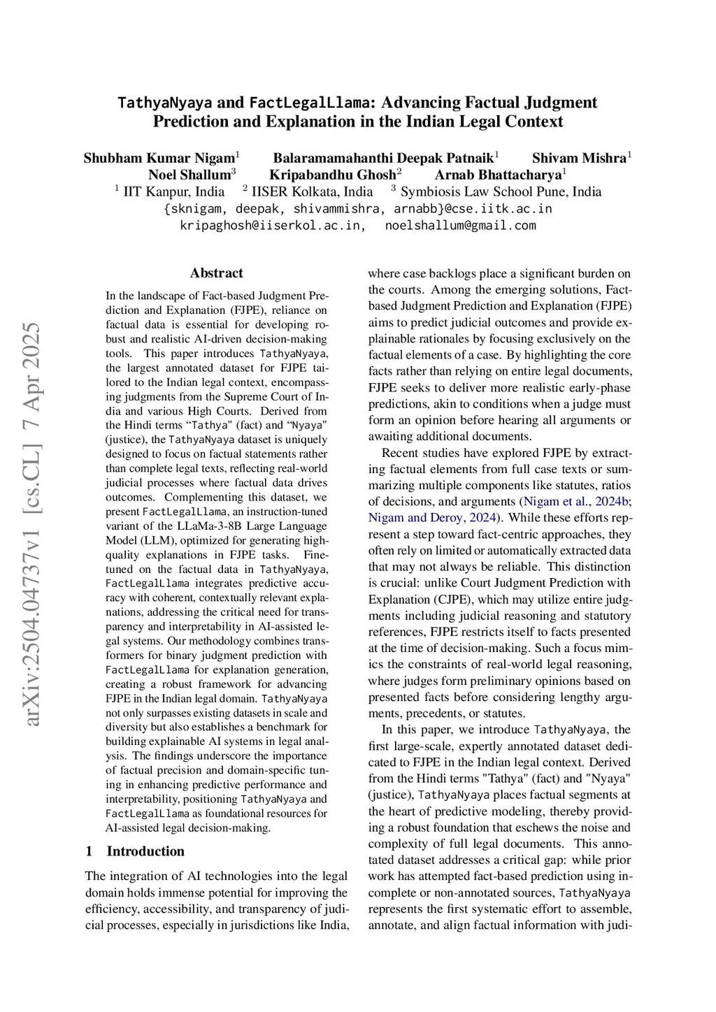 TathyaNyaya and FactLegalLlama: Advancing Factual Judgment Prediction and Explanation in the Indian Legal Context