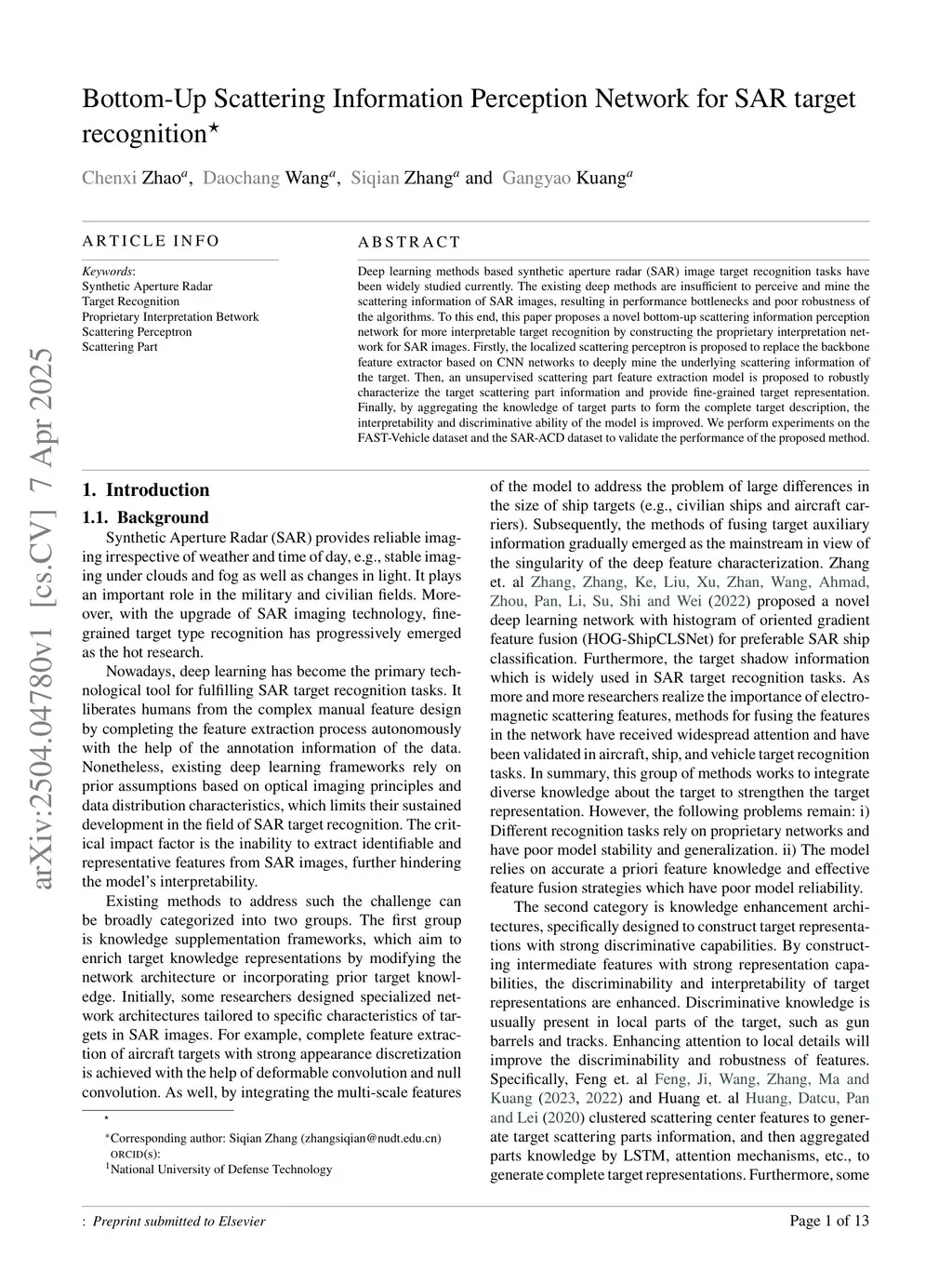 Bottom-Up Scattering Information Perception Network for SAR target recognition