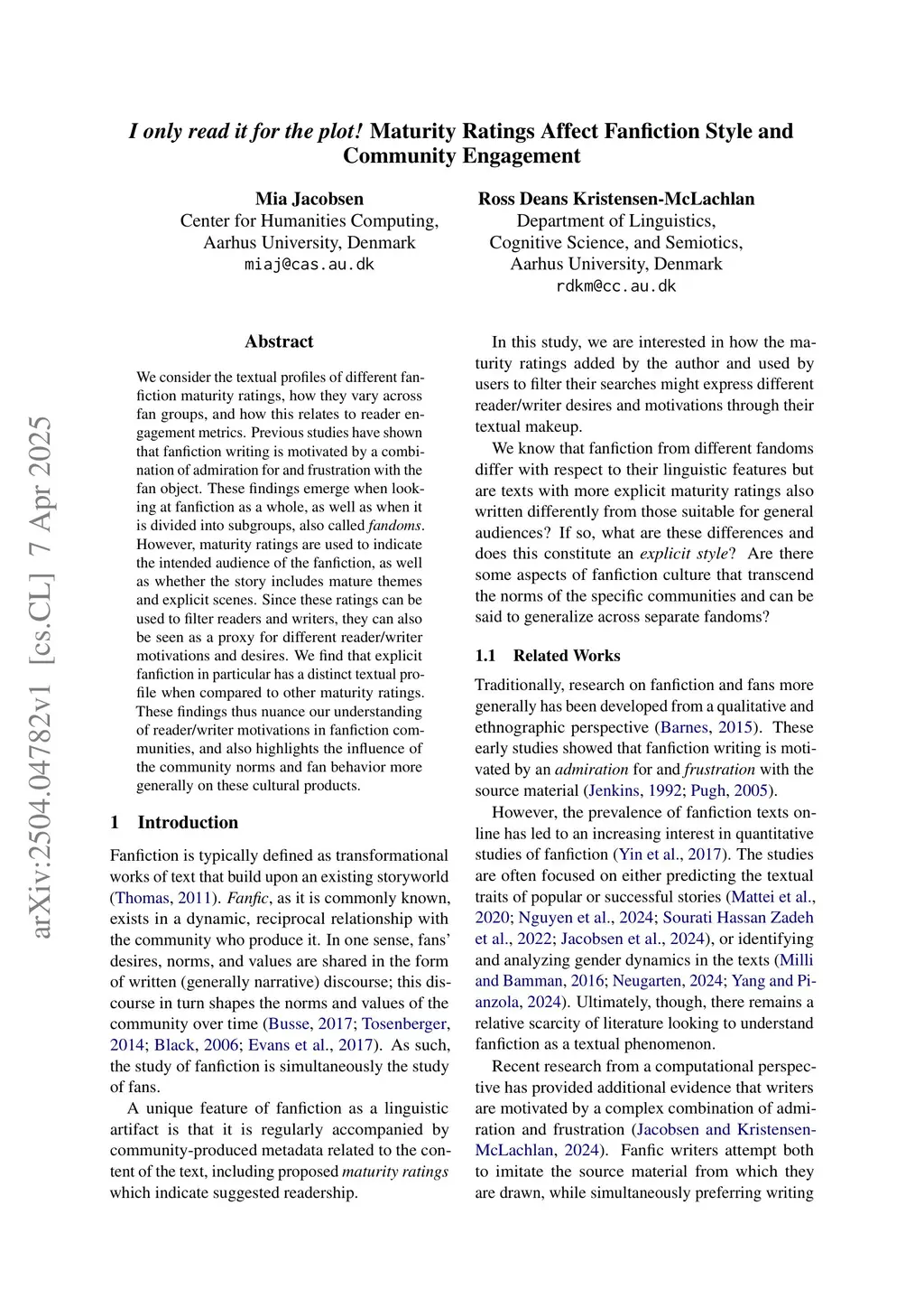 I only read it for the plot! Maturity Ratings Affect Fanfiction Style and Community Engagement