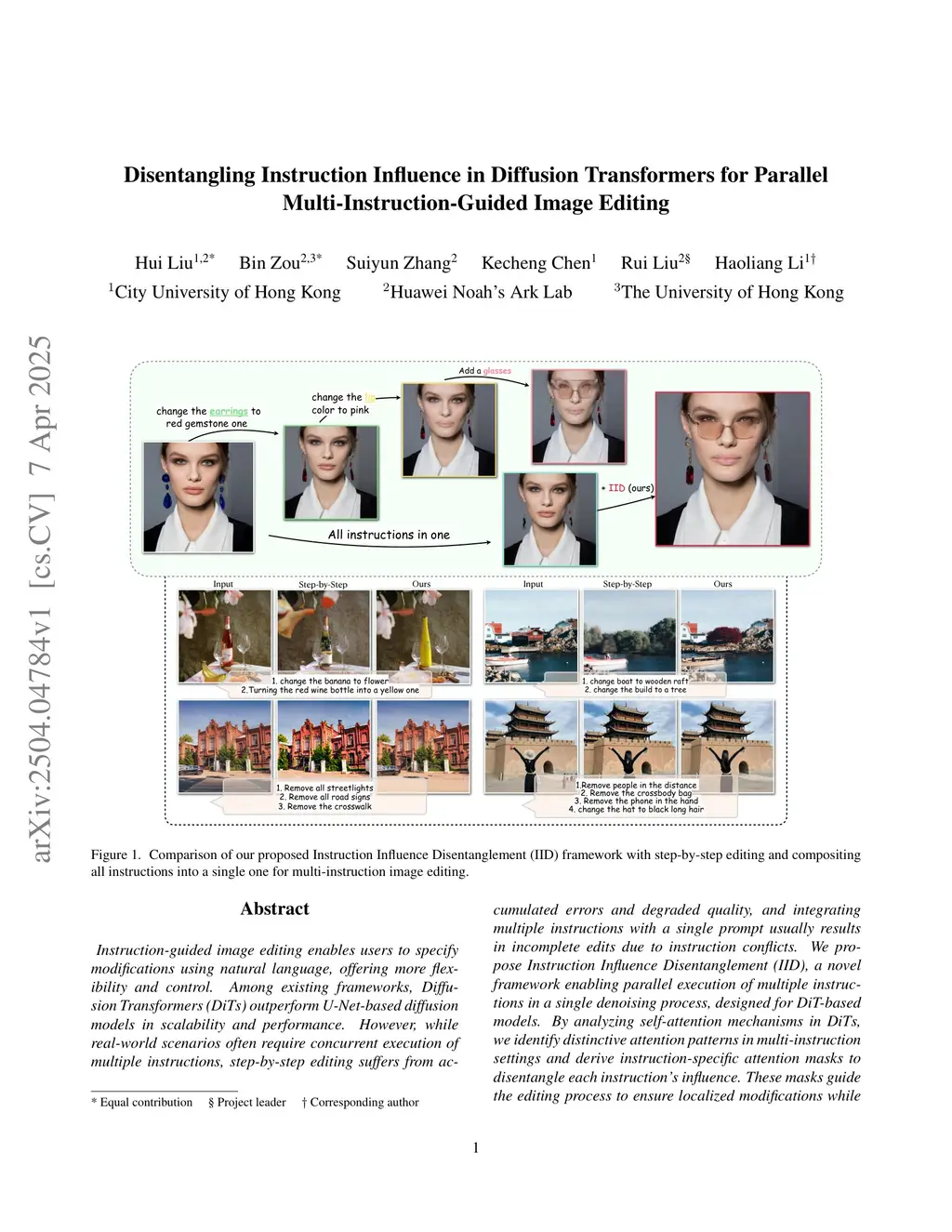 Instruction-guided image editing enables users to specify modifications using natural language, offering more flexibility and control. Among existing frameworks, Diffusion Transformers (DiTs) outperform U-Net-based diffusion models in scalability and performance. However, while real-world scenarios often require concurrent execution of multiple instructions, step-by-step editing suffers from accumulated errors and degraded quality, and integrating multiple instructions with a single prompt usually results in incomplete edits due to instruction conflicts. We propose Instruction Influence Disentanglement (IID), a novel framework enabling parallel execution of multiple instructions in a single denoising process, designed for DiT-based models. By analyzing self-attention mechanisms in DiTs, we identify distinctive attention patterns in multi-instruction settings and derive instruction-specific attention masks to disentangle each instruction's influence. These masks guide the editing process to ensure localized modifications while preserving consistency in non-edited regions. Extensive experiments on open-source and custom datasets demonstrate that IID reduces diffusion steps while improving fidelity and instruction completion compared to existing baselines. The codes will be publicly released upon the acceptance of the paper.