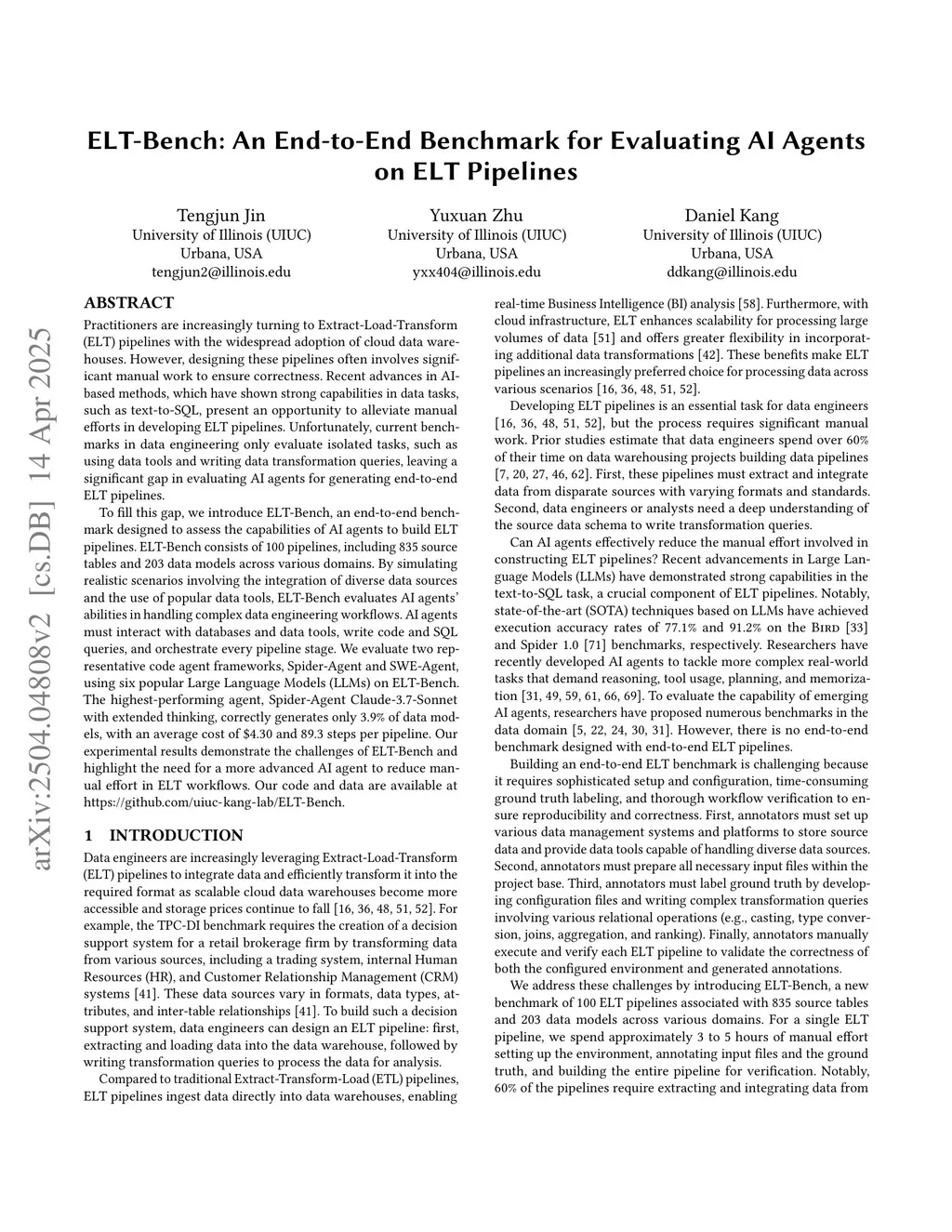 ELT-Bench: An End-to-End Benchmark for Evaluating AI Agents on ELT Pipelines