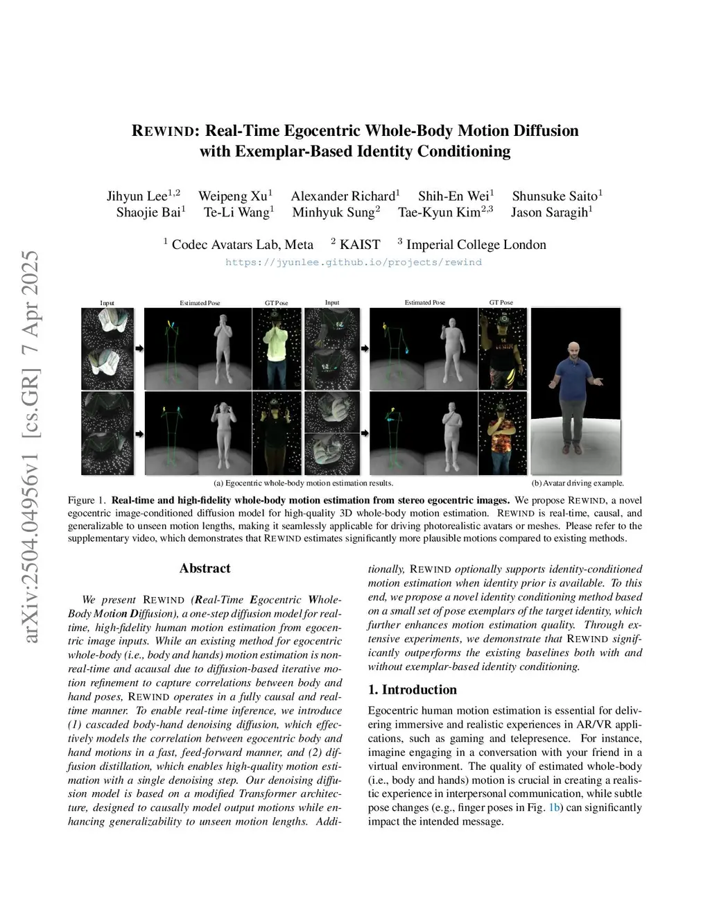 REWIND: Real-Time Egocentric Whole-Body Motion Diffusion with Exemplar-Based Identity Conditioning