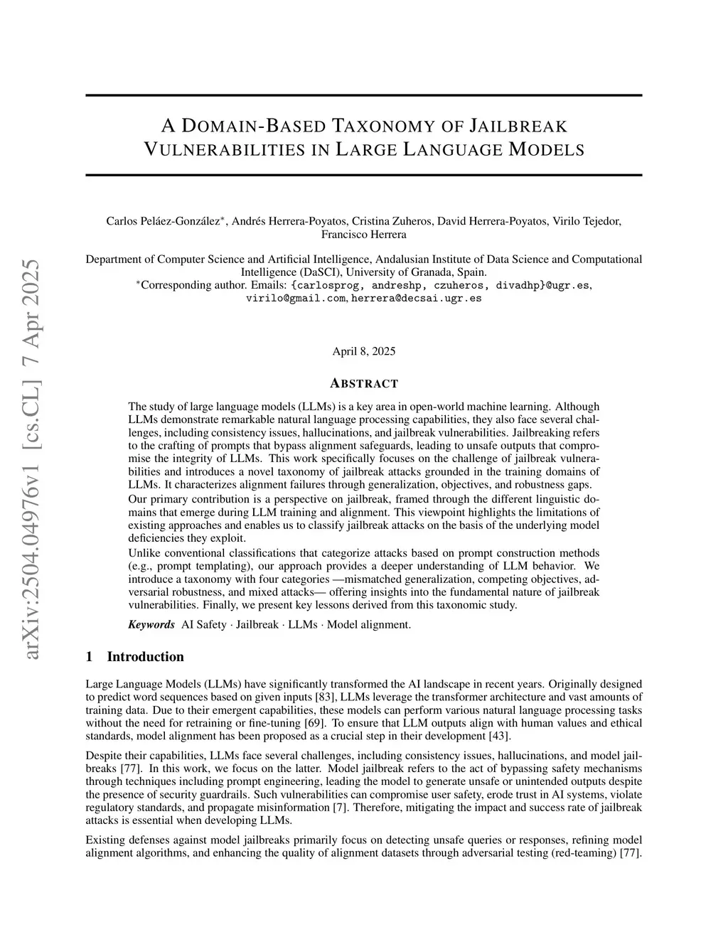 A Domain-Based Taxonomy of Jailbreak Vulnerabilities in Large Language Models