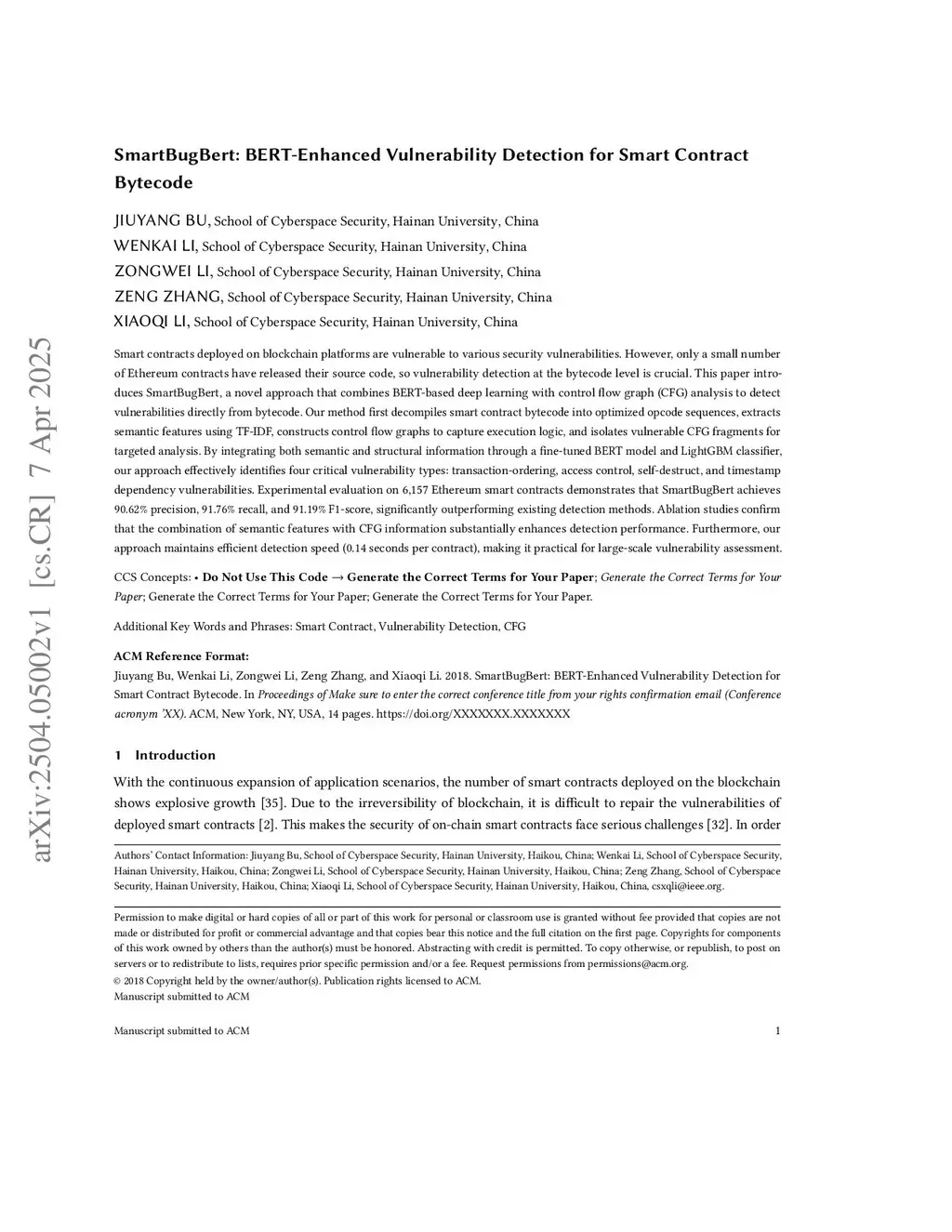 Smart contracts deployed on blockchain platforms are vulnerable to various security vulnerabilities. However, only a small number of Ethereum contracts have released their source code, so vulnerability detection at the bytecode level is crucial. This paper introduces SmartBugBert, a novel approach that combines BERT-based deep learning with control flow graph (CFG) analysis to detect vulnerabilities directly from bytecode. Our method first decompiles smart contract bytecode into optimized opcode sequences, extracts semantic features using TF-IDF, constructs control flow graphs to capture execution logic, and isolates vulnerable CFG fragments for targeted analysis. By integrating both semantic and structural information through a fine-tuned BERT model and LightGBM classifier, our approach effectively identifies four critical vulnerability types: transaction-ordering, access control, self-destruct, and timestamp dependency vulnerabilities. Experimental evaluation on 6,157 Ethereum smart contracts demonstrates that SmartBugBert achieves 90.62% precision, 91.76% recall, and 91.19% F1-score, significantly outperforming existing detection methods. Ablation studies confirm that the combination of semantic features with CFG information substantially enhances detection performance. Furthermore, our approach maintains efficient detection speed (0.14 seconds per contract), making it practical for large-scale vulnerability assessment.