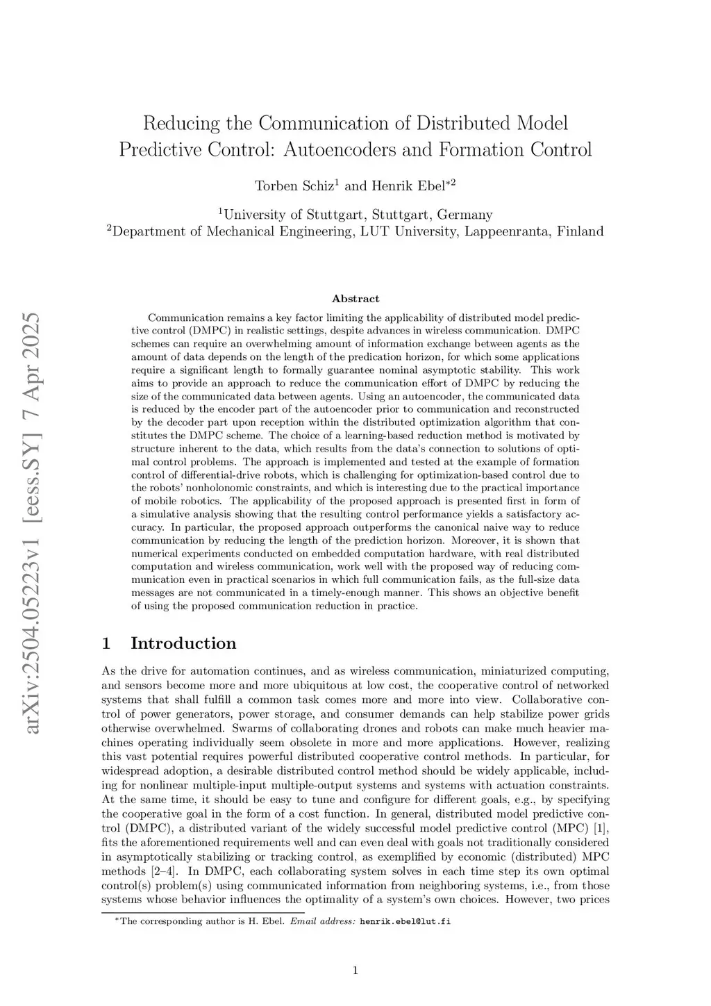 Reducing the Communication of Distributed Model Predictive Control: Autoencoders and Formation Control