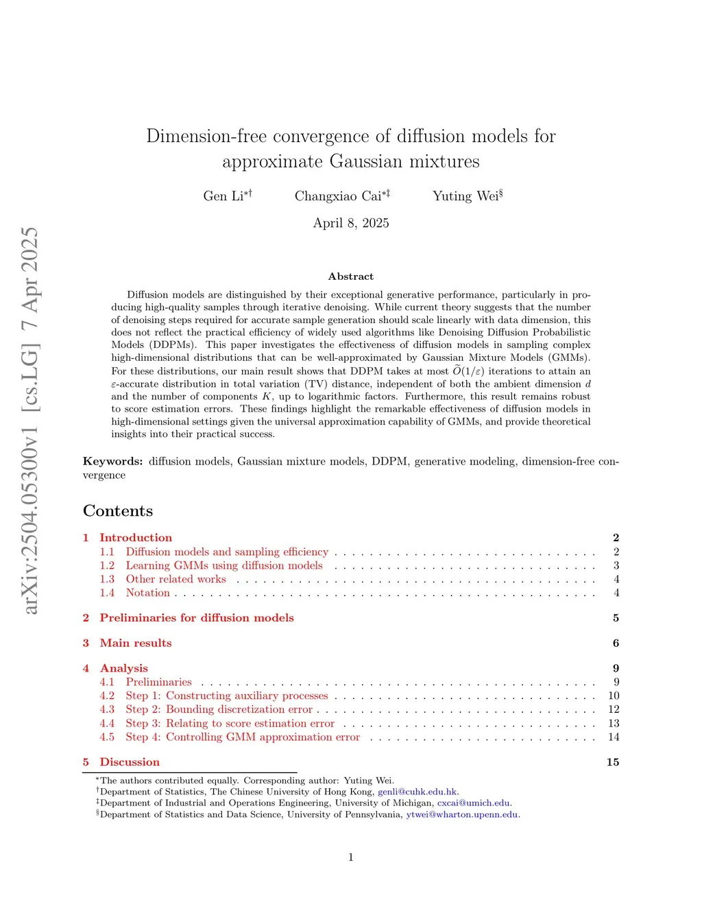 Diffusion models are distinguished by their exceptional generative performance, particularly in producing high-quality samples through iterative denoising. While current theory suggests that the number of denoising steps required for accurate sample generation should scale linearly with data dimension, this does not reflect the practical efficiency of widely used algorithms like Denoising Diffusion Probabilistic Models (DDPMs). This paper investigates the effectiveness of diffusion models in sampling from complex high-dimensional distributions that can be well-approximated by Gaussian Mixture Models (GMMs). For these distributions, our main result shows that DDPM takes at most iterations to attain an -accurate distribution in total variation (TV) distance, independent of both the ambient dimension and the number of components , up to logarithmic factors. Furthermore, this result remains robust to score estimation errors. These findings highlight the remarkable effectiveness of diffusion models in high-dimensional settings given the universal approximation capability of GMMs, and provide theoretical insights into their practical success.