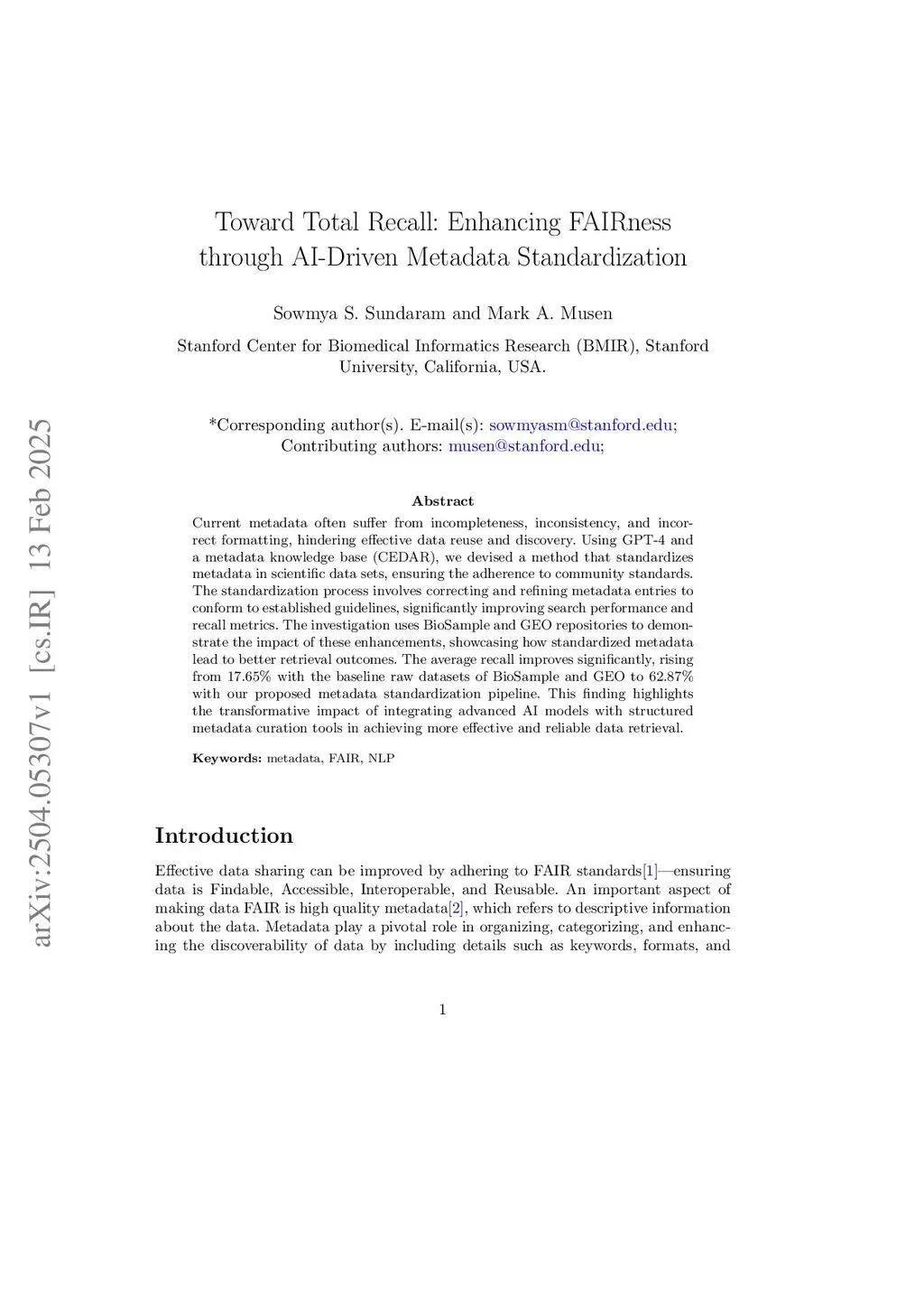 Toward Total Recall: Enhancing FAIRness through AI-Driven Metadata Standardization