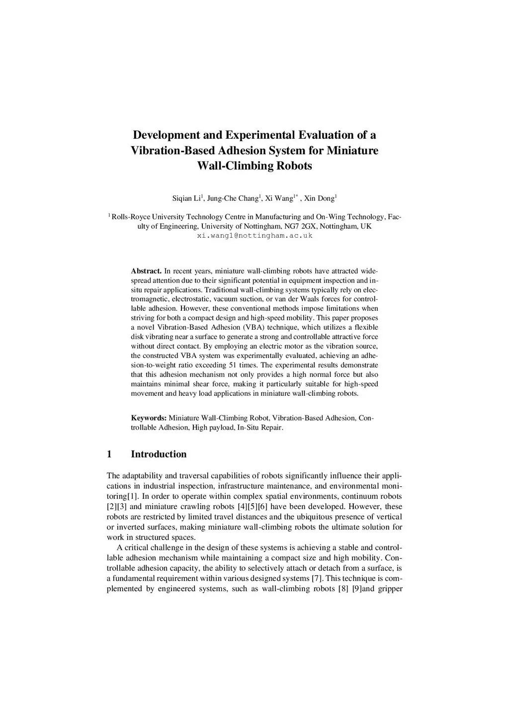 In recent years, miniature wall-climbing robots have attracted widespread attention due to their significant potential in equipment inspection and in-situ repair applications. Traditional wall-climbing systems typically rely on electromagnetic, electrostatic, vacuum suction, or van der Waals forces for controllable adhesion. However, these conventional methods impose limitations when striving for both a compact design and high-speed mobility. This paper proposes a novel Vibration-Based Adhesion (VBA) technique, which utilizes a flexible disk vibrating near a surface to generate a strong and controllable attractive force without direct contact. By employing an electric motor as the vibration source, the constructed VBA system was experimentally evaluated, achieving an adhesion-to-weight ratio exceeding 51 times. The experimental results demonstrate that this adhesion mechanism not only provides a high normal force but also maintains minimal shear force, making it particularly suitable for high-speed movement and heavy load applications in miniature wall-climbing robots.