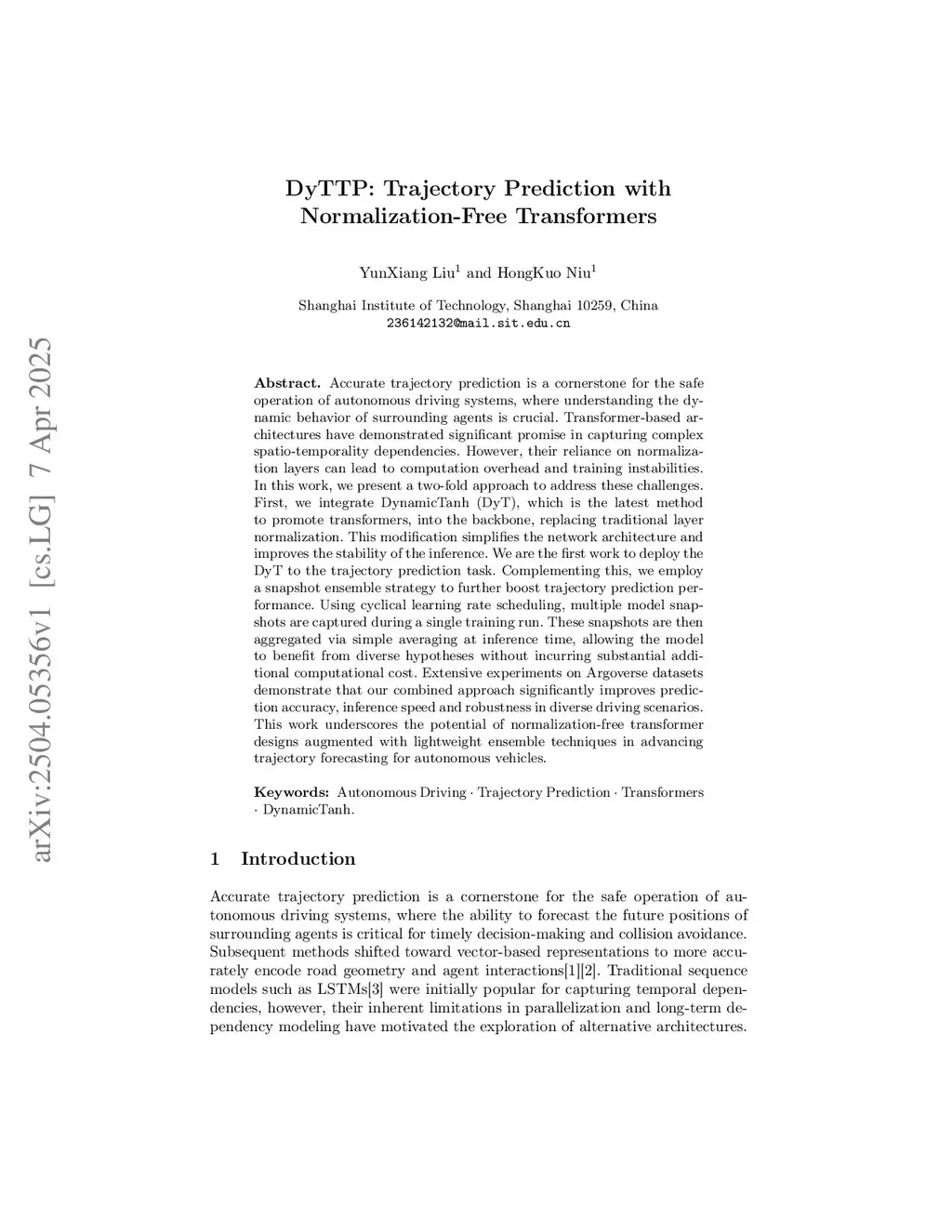 Accurate trajectory prediction is a cornerstone for the safe operation of autonomous driving systems, where understanding the dynamic behavior of surrounding agents is crucial. Transformer-based architectures have demonstrated significant promise in capturing complex spatio-temporality dependencies. However, their reliance on normalization layers can lead to computation overhead and training instabilities. In this work, we present a two-fold approach to address these challenges. First, we integrate DynamicTanh (DyT), which is the latest method to promote transformers, into the backbone, replacing traditional layer normalization. This modification simplifies the network architecture and improves the stability of the inference. We are the first work to deploy the DyT to the trajectory prediction task. Complementing this, we employ a snapshot ensemble strategy to further boost trajectory prediction performance. Using cyclical learning rate scheduling, multiple model snapshots are captured during a single training run. These snapshots are then aggregated via simple averaging at inference time, allowing the model to benefit from diverse hypotheses without incurring substantial additional computational cost. Extensive experiments on Argoverse datasets demonstrate that our combined approach significantly improves prediction accuracy, inference speed and robustness in diverse driving scenarios. This work underscores the potential of normalization-free transformer designs augmented with lightweight ensemble techniques in advancing trajectory forecasting for autonomous vehicles.