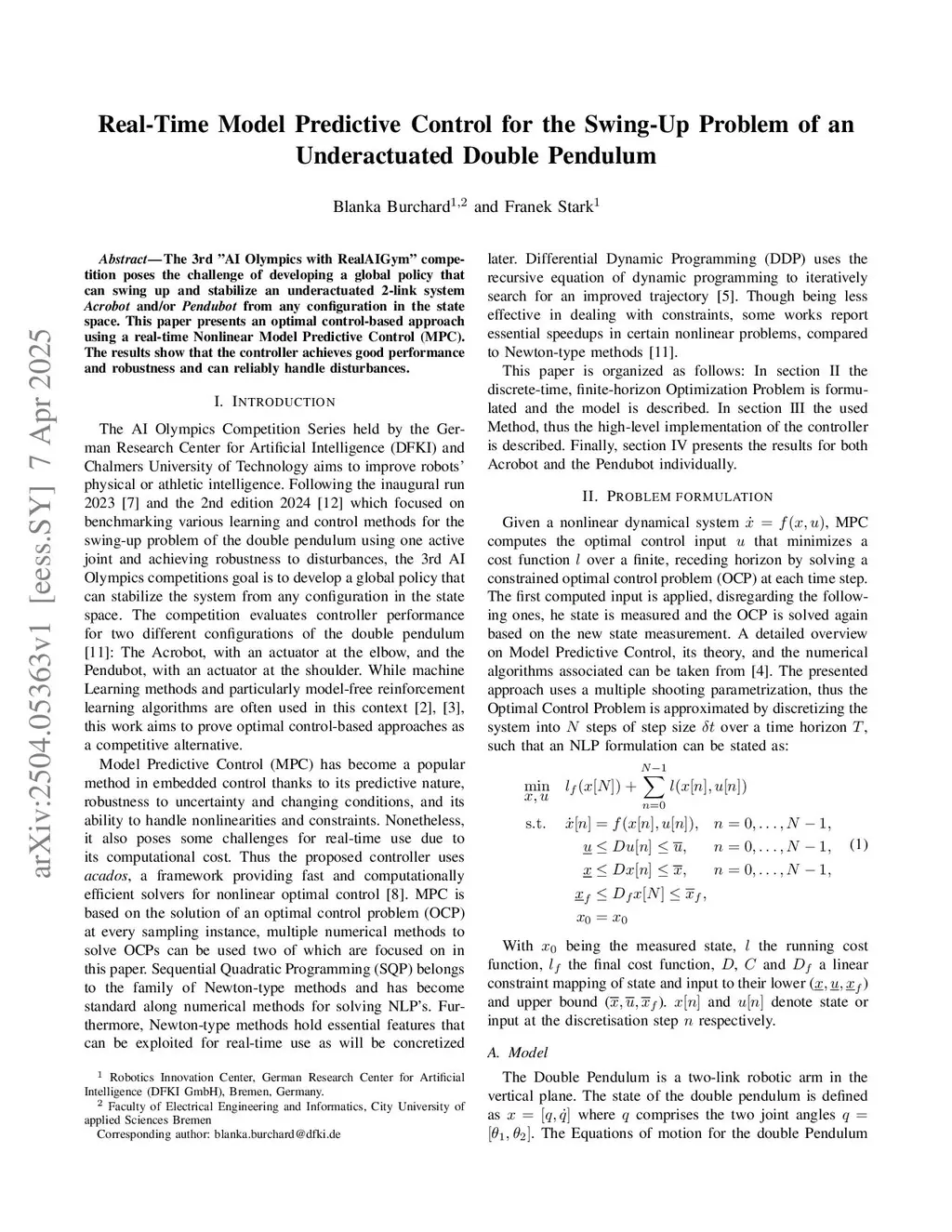 Real-Time Model Predictive Control for the Swing-Up Problem of an Underactuated Double Pendulum