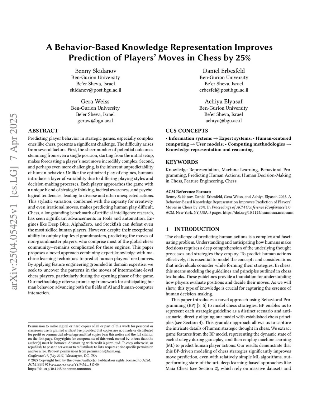 A Behavior-Based Knowledge Representation Improves Prediction of Players' Moves in Chess by 25%