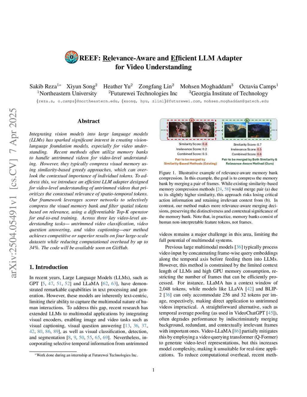 REEF: Relevance-Aware and Efficient LLM Adapter for Video Understanding