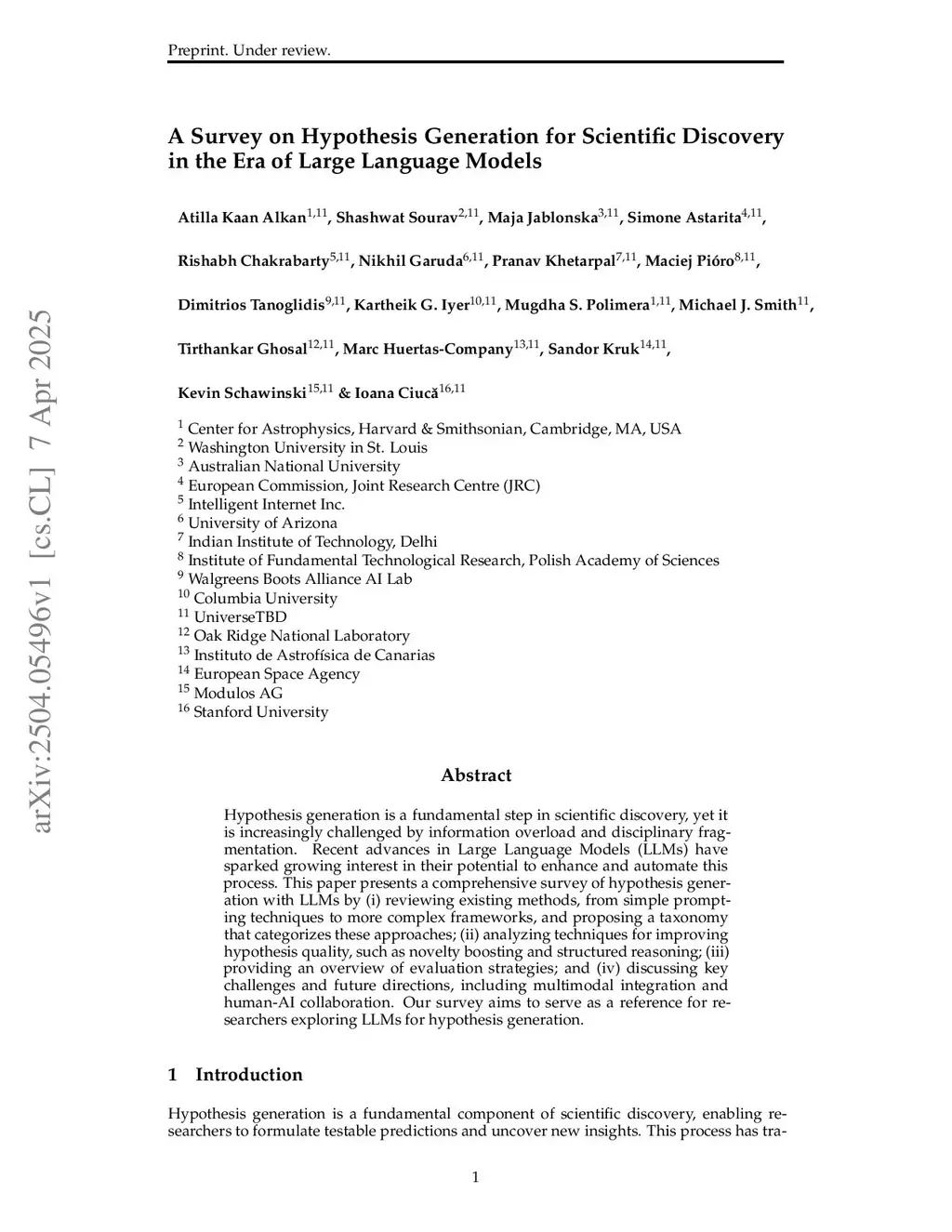 A Survey on Hypothesis Generation for Scientific Discovery in the Era of Large Language Models