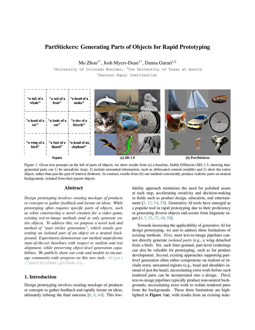 Design prototyping involves creating mockups of products or concepts to gather feedback and iterate on ideas. While prototyping often requires specific parts of objects, such as when constructing a novel creature for a video game, existing text-to-image methods tend to only generate entire objects. To address this, we propose a novel task and method of ``part sticker generation", which entails generating an isolated part of an object on a neutral background. Experiments demonstrate our method outperforms state-of-the-art baselines with respect to realism and text alignment, while preserving object-level generation capabilities. We publicly share our code and models to encourage community-wide progress on this new task:this https URL.