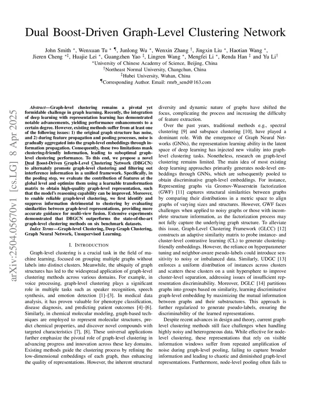 Graph-level clustering remains a pivotal yet formidable challenge in graph learning. Recently, the integration of deep learning with representation learning has demonstrated notable advancements, yielding performance enhancements to a certain degree. However, existing methods suffer from at least one of the following issues: 1. the original graph structure has noise, and 2. during feature propagation and pooling processes, noise is gradually aggregated into the graph-level embeddings through information propagation. Consequently, these two limitations mask clustering-friendly information, leading to suboptimal graph-level clustering performance. To this end, we propose a novel Dual Boost-Driven Graph-Level Clustering Network (DBGCN) to alternately promote graph-level clustering and filtering out interference information in a unified framework. Specifically, in the pooling step, we evaluate the contribution of features at the global and optimize them using a learnable transformation matrix to obtain high-quality graph-level representation, such that the model's reasoning capability can be improved. Moreover, to enable reliable graph-level clustering, we first identify and suppress information detrimental to clustering by evaluating similarities between graph-level representations, providing more accurate guidance for multi-view fusion. Extensive experiments demonstrated that DBGCN outperforms the state-of-the-art graph-level clustering methods on six benchmark datasets.