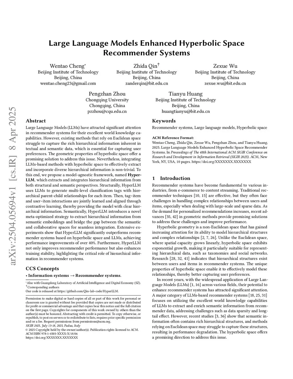 Large Language Models Enhanced Hyperbolic Space Recommender Systems