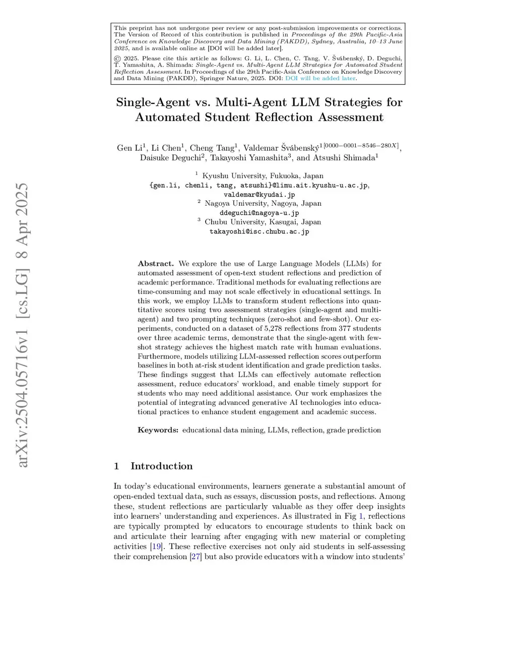 Single-Agent vs. Multi-Agent LLM Strategies for Automated Student Reflection Assessment