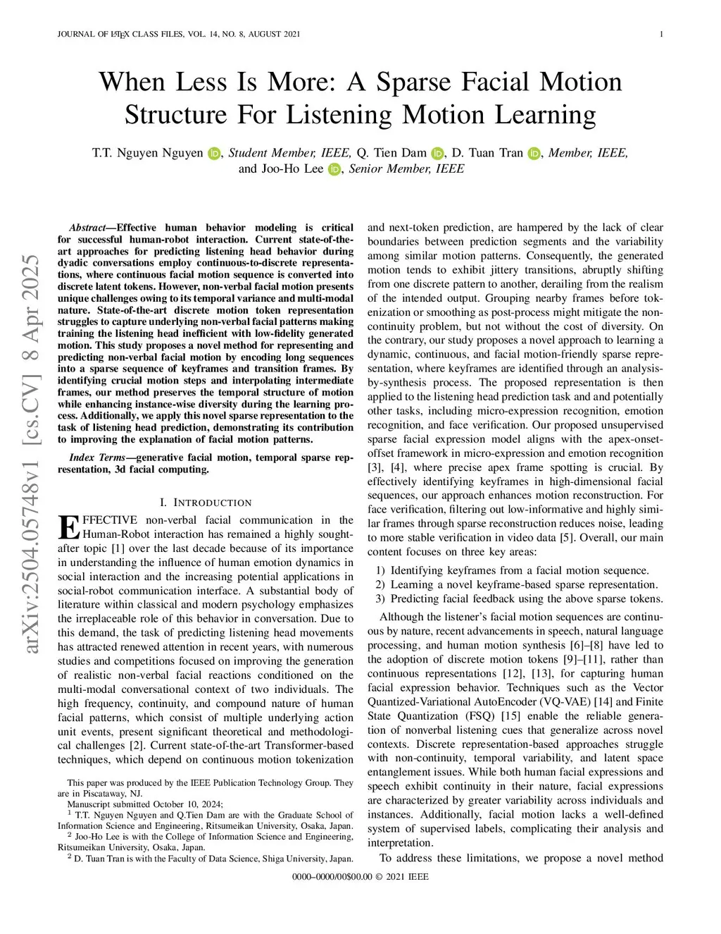 When Less Is More: A Sparse Facial Motion Structure For Listening Motion Learning