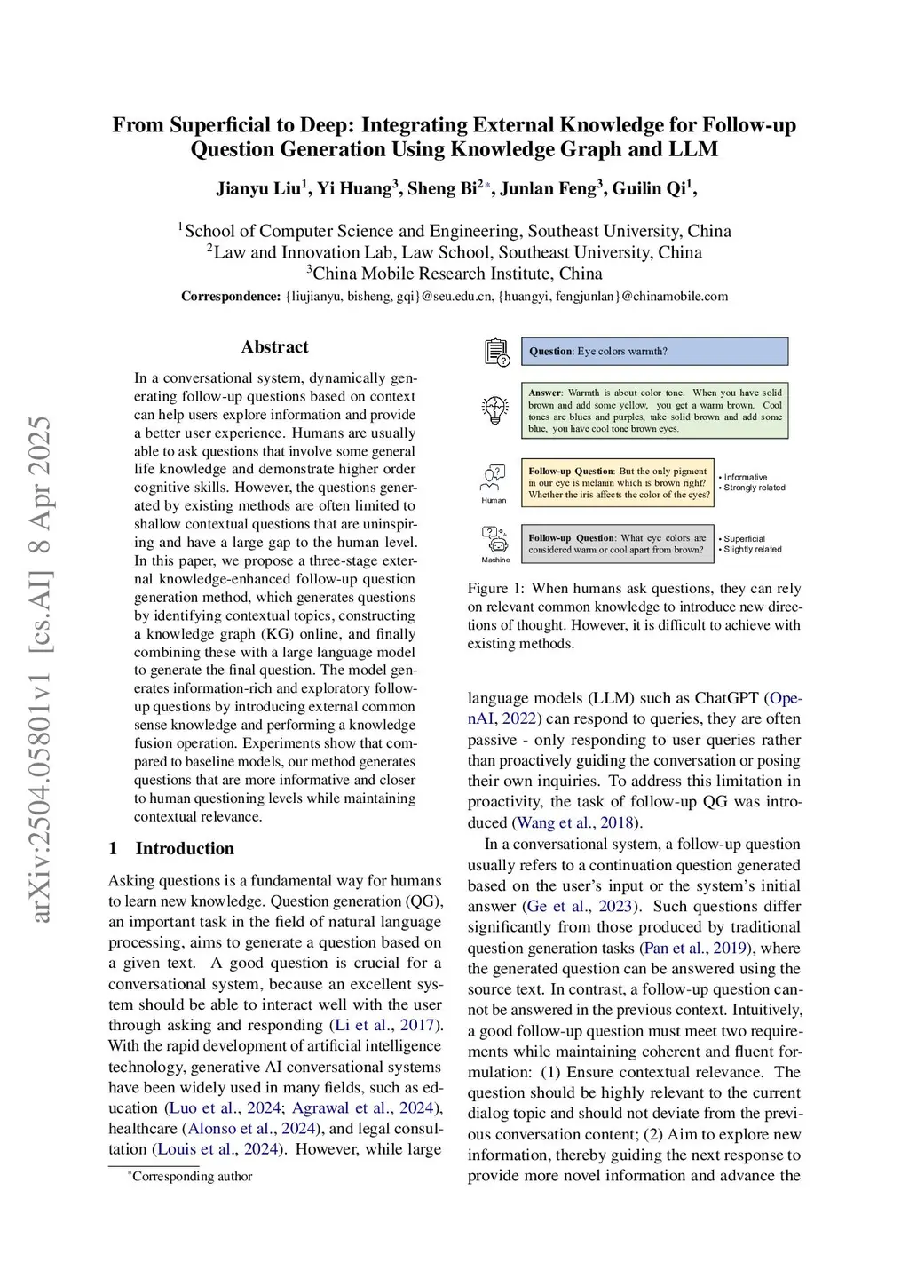 From Superficial to Deep: Integrating External Knowledge for Follow-up Question Generation Using Knowledge Graph and LLM