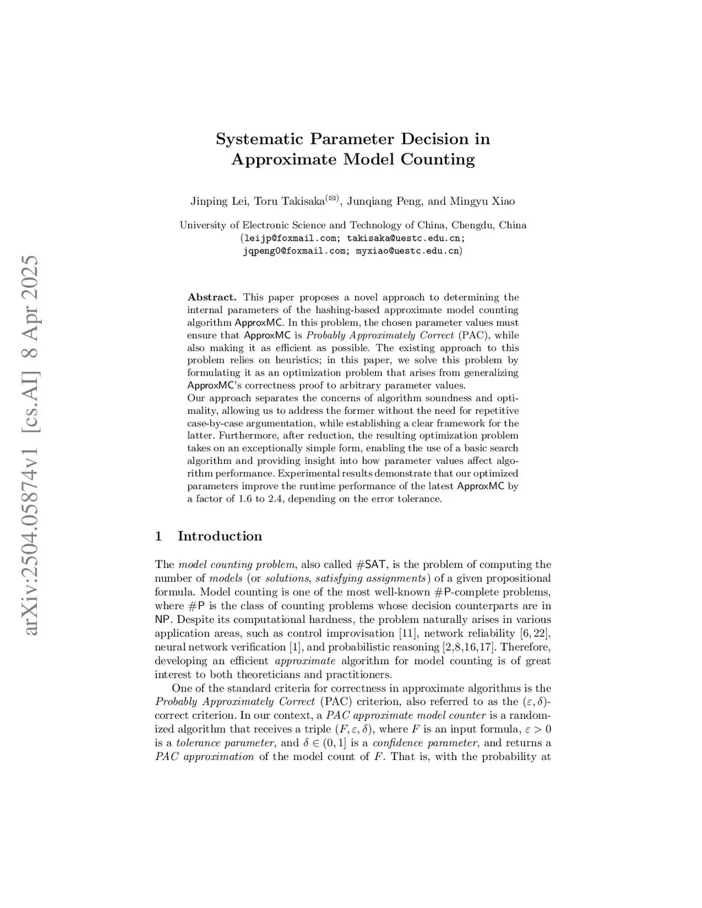 This paper proposes a novel approach to determining the internal parameters of the hashing-based approximate model counting algorithm . In this problem, the chosen parameter values must ensure that is Probably Approximately Correct (PAC), while also making it as efficient as possible. The existing approach to this problem relies on heuristics; in this paper, we solve this problem by formulating it as an optimization problem that arises from generalizing 's correctness proof to arbitrary parameter values.