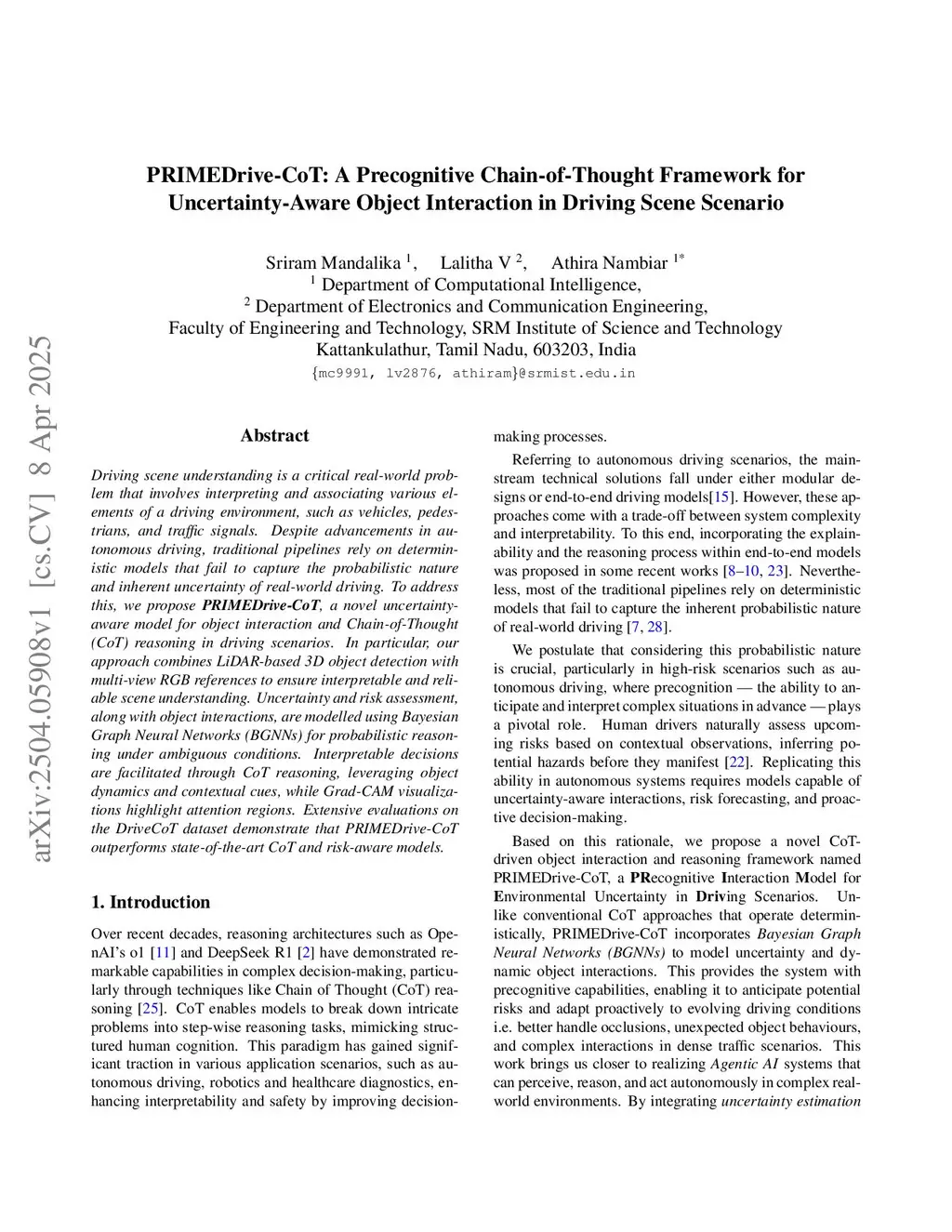 PRIMEDrive-CoT: A Precognitive Chain-of-Thought Framework for Uncertainty-Aware Object Interaction in Driving Scene Scenario
