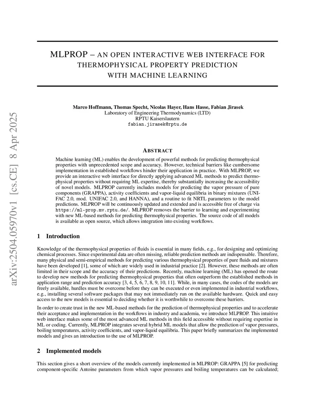 Machine learning (ML) enables the development of powerful methods for predicting thermophysical properties with unprecedented scope and accuracy. However, technical barriers like cumbersome implementation in established workflows hinder their application in practice. With MLPROP, we provide an interactive web interface for directly applying advanced ML methods to predict thermophysical properties without requiring ML expertise, thereby substantially increasing the accessibility of novel models. MLPROP currently includes models for predicting the vapor pressure of pure components (GRAPPA), activity coefficients and vapor-liquid equilibria in binary mixtures (UNIFAC 2.0, mod. UNIFAC 2.0, and HANNA), and a routine to fit NRTL parameters to the model predictions. MLPROP will be continuously updated and extended and is accessible free of charge viathis https URL. MLPROP removes the barrier to learning and experimenting with new ML-based methods for predicting thermophysical properties. The source code of all models is available as open source, which allows integration into existing workflows.