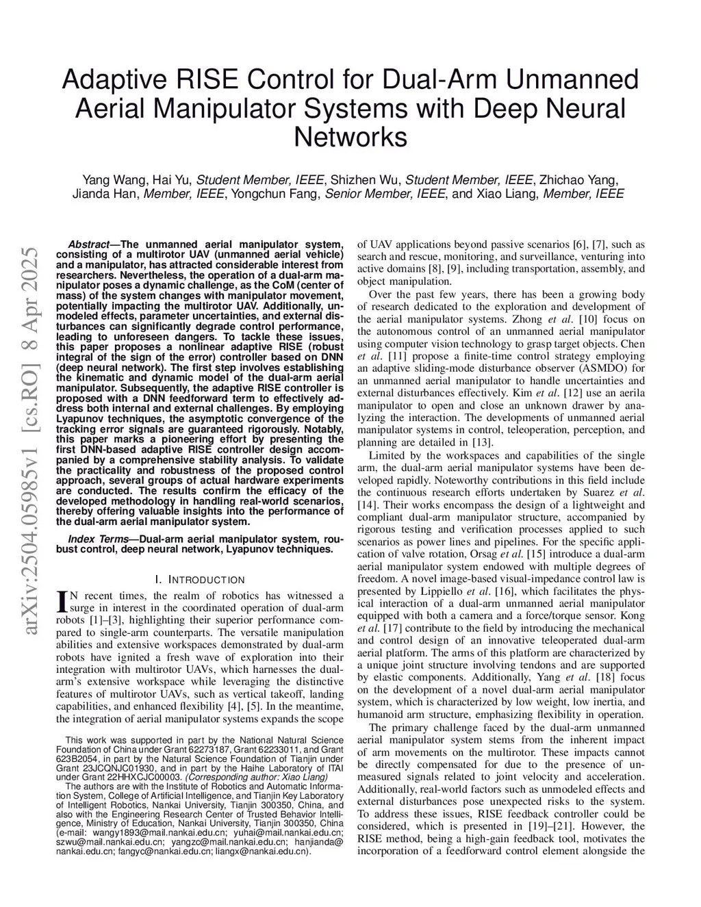 Adaptive RISE Control for Dual-Arm Unmanned Aerial Manipulator Systems with Deep Neural Networks