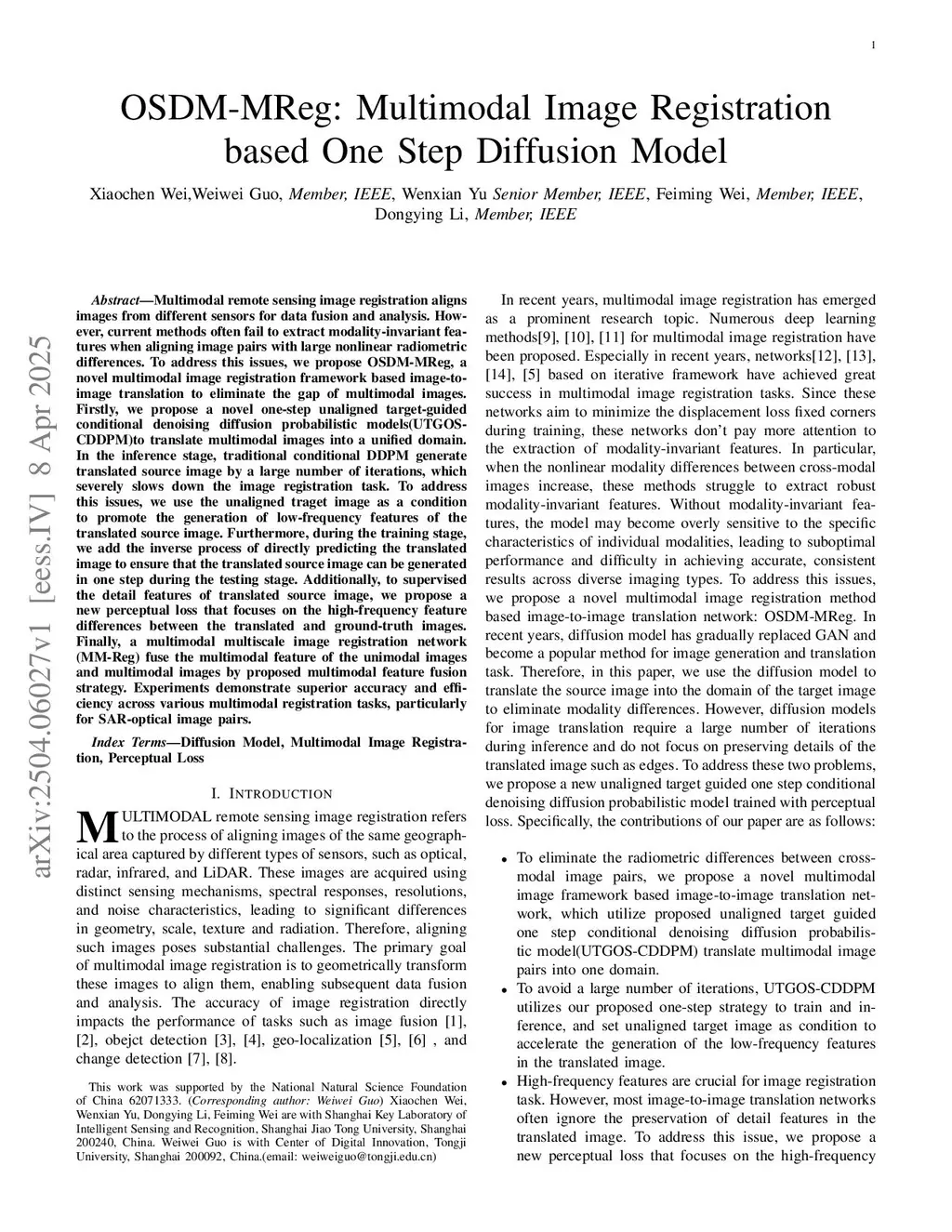 OSDM-MReg: Multimodal Image Registration based One Step Diffusion Model