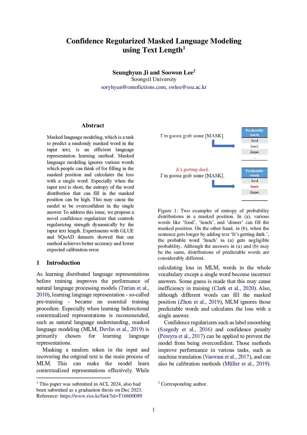 Confidence Regularized Masked Language Modeling using Text Length