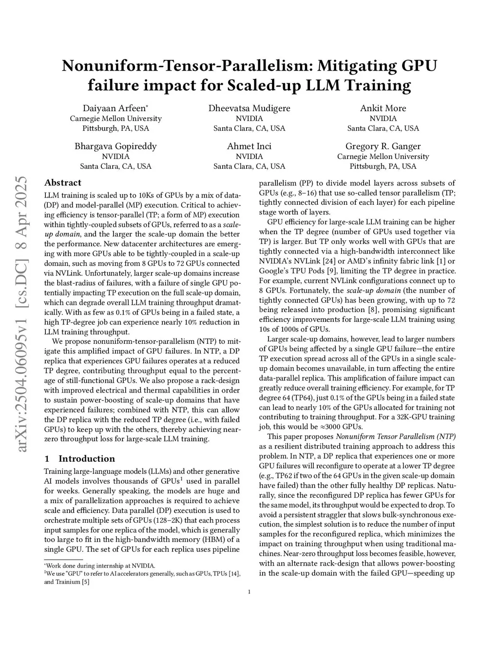 Nonuniform-Tensor-Parallelism: Mitigating GPU failure impact for Scaled-up LLM Training