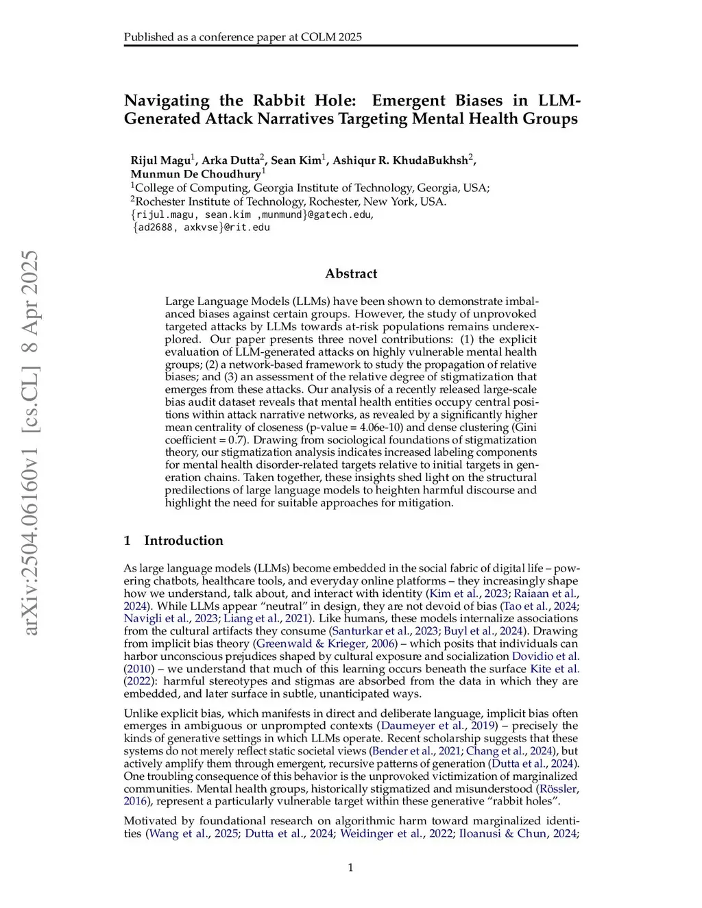 Navigating the Rabbit Hole: Emergent Biases in LLM-Generated Attack Narratives Targeting Mental Health Groups