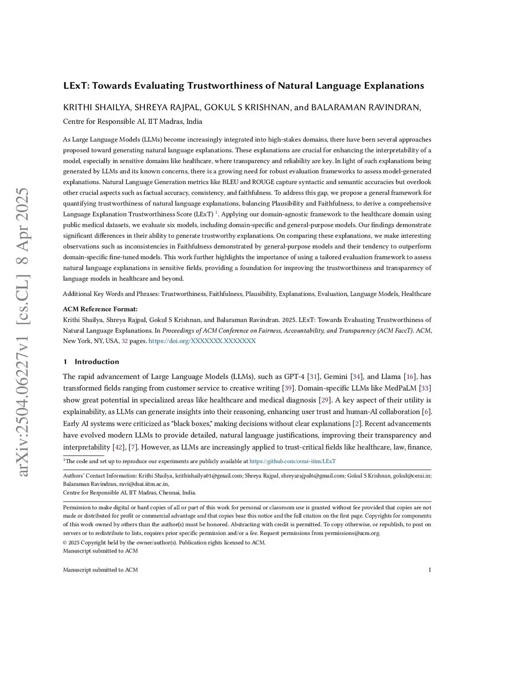 As Large Language Models (LLMs) become increasingly integrated into high-stakes domains, there have been several approaches proposed toward generating natural language explanations. These explanations are crucial for enhancing the interpretability of a model, especially in sensitive domains like healthcare, where transparency and reliability are key. In light of such explanations being generated by LLMs and its known concerns, there is a growing need for robust evaluation frameworks to assess model-generated explanations. Natural Language Generation metrics like BLEU and ROUGE capture syntactic and semantic accuracies but overlook other crucial aspects such as factual accuracy, consistency, and faithfulness. To address this gap, we propose a general framework for quantifying trustworthiness of natural language explanations, balancing Plausibility and Faithfulness, to derive a comprehensive Language Explanation Trustworthiness Score (LExT) (The code and set up to reproduce our experiments are publicly available atthis https URL). Applying our domain-agnostic framework to the healthcare domain using public medical datasets, we evaluate six models, including domain-specific and general-purpose models. Our findings demonstrate significant differences in their ability to generate trustworthy explanations. On comparing these explanations, we make interesting observations such as inconsistencies in Faithfulness demonstrated by general-purpose models and their tendency to outperform domain-specific fine-tuned models. This work further highlights the importance of using a tailored evaluation framework to assess natural language explanations in sensitive fields, providing a foundation for improving the trustworthiness and transparency of language models in healthcare and beyond.