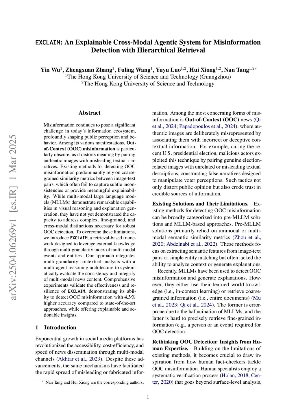 EXCLAIM: An Explainable Cross-Modal Agentic System for Misinformation Detection with Hierarchical Retrieval
