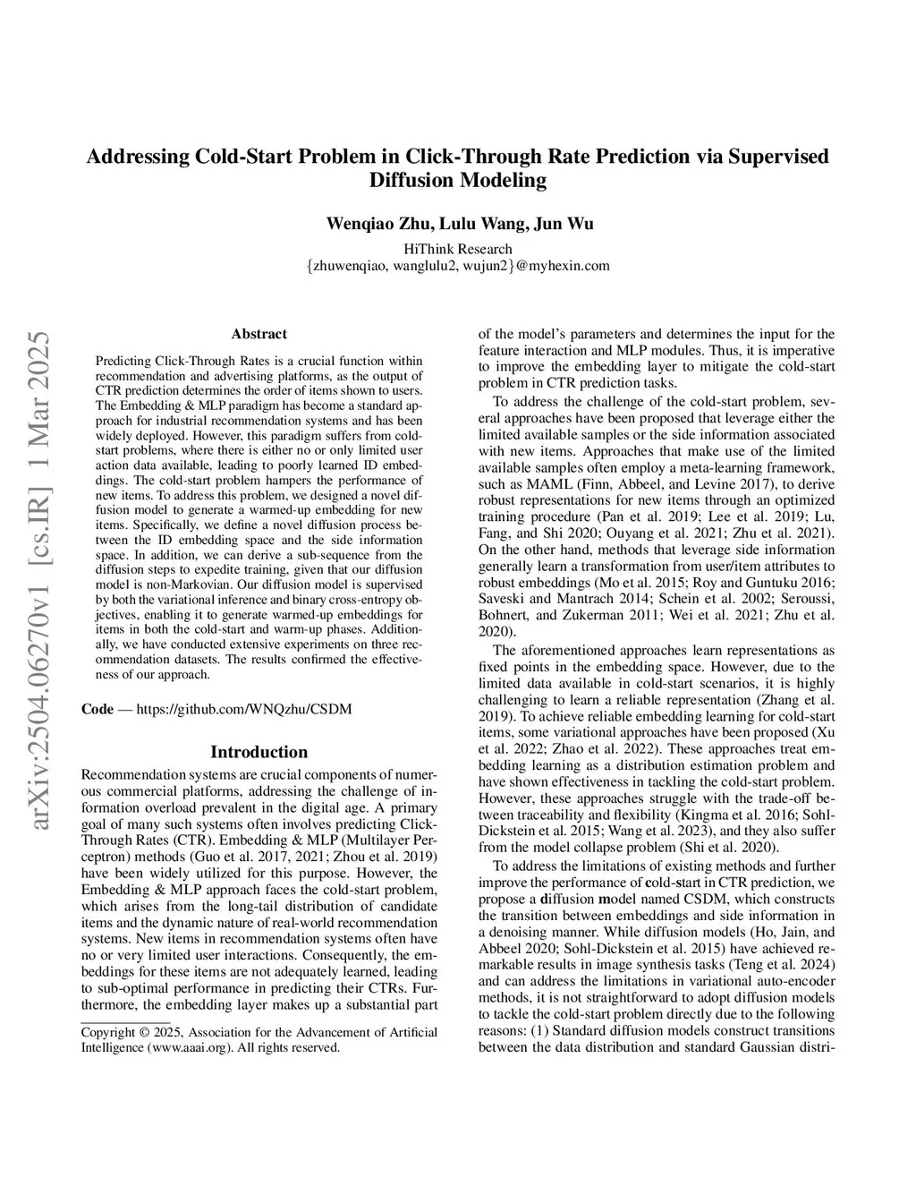 Addressing Cold-start Problem in Click-Through Rate Prediction via Supervised Diffusion Modeling