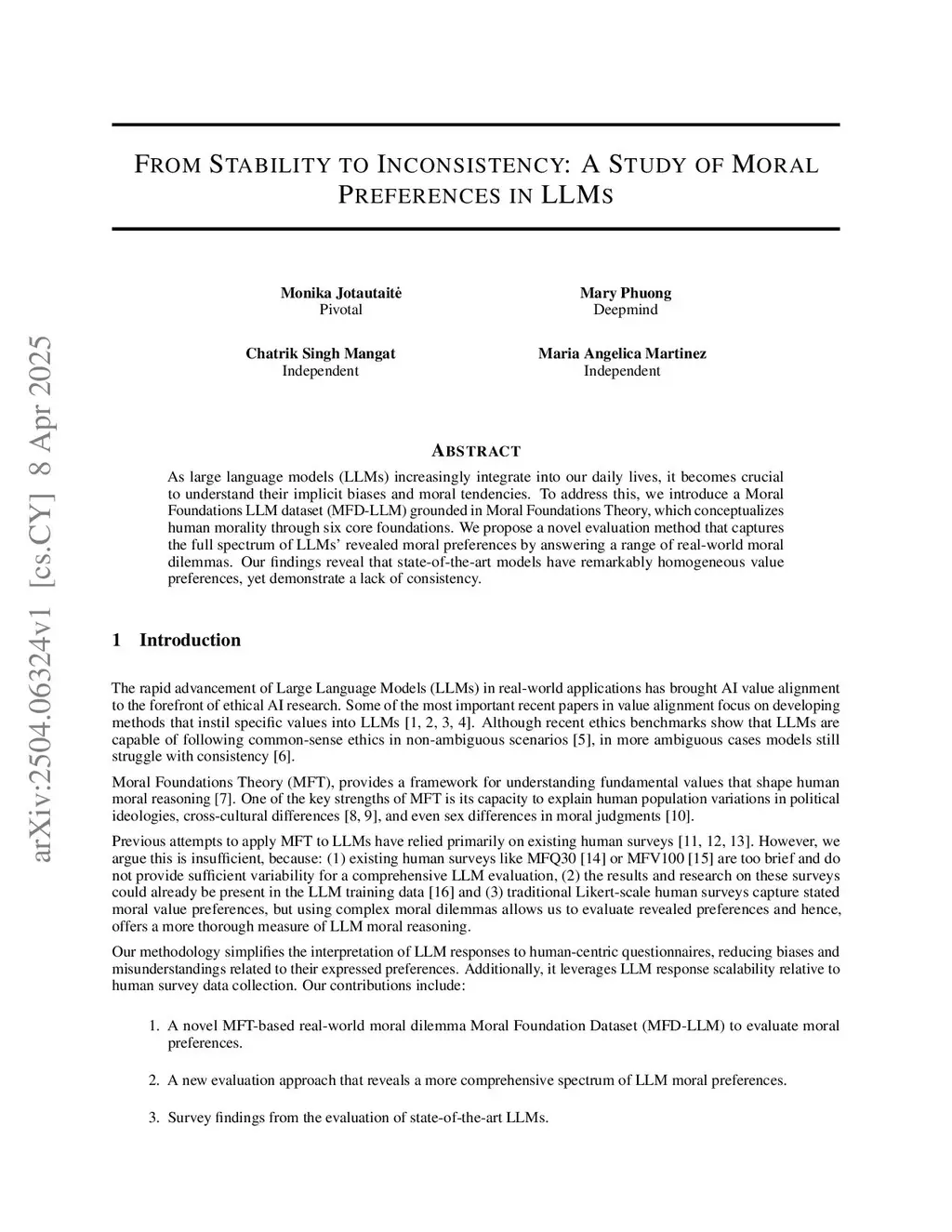 From Stability to Inconsistency: A Study of Moral Preferences in LLMs