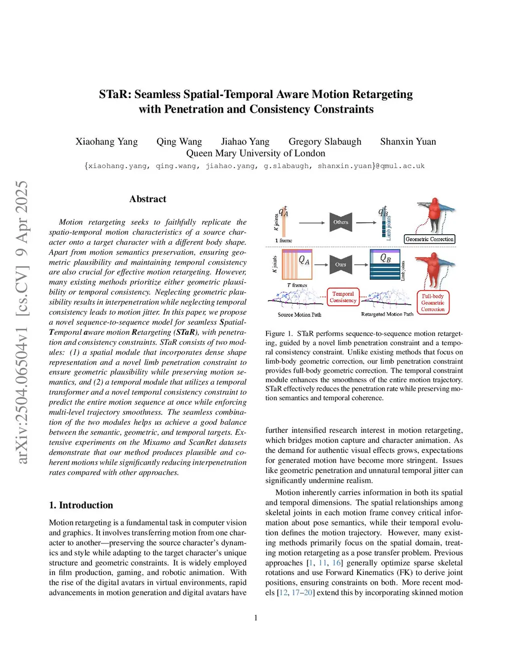 STaR: Seamless Spatial-Temporal Aware Motion Retargeting with Penetration and Consistency Constraints