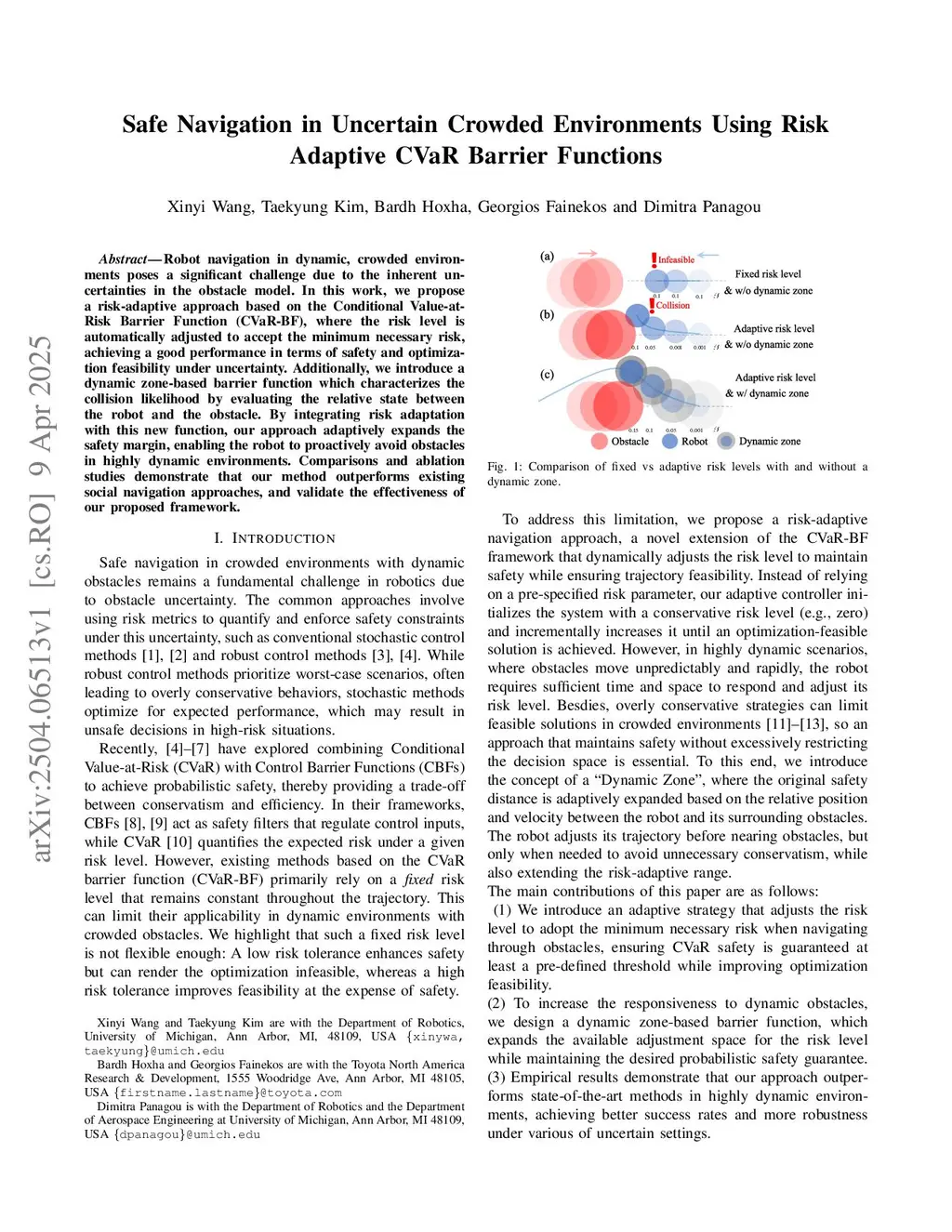 Safe Navigation in Uncertain Crowded Environments Using Risk Adaptive CVaR Barrier Functions